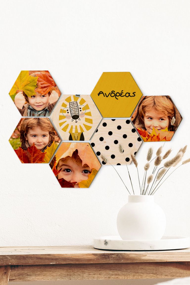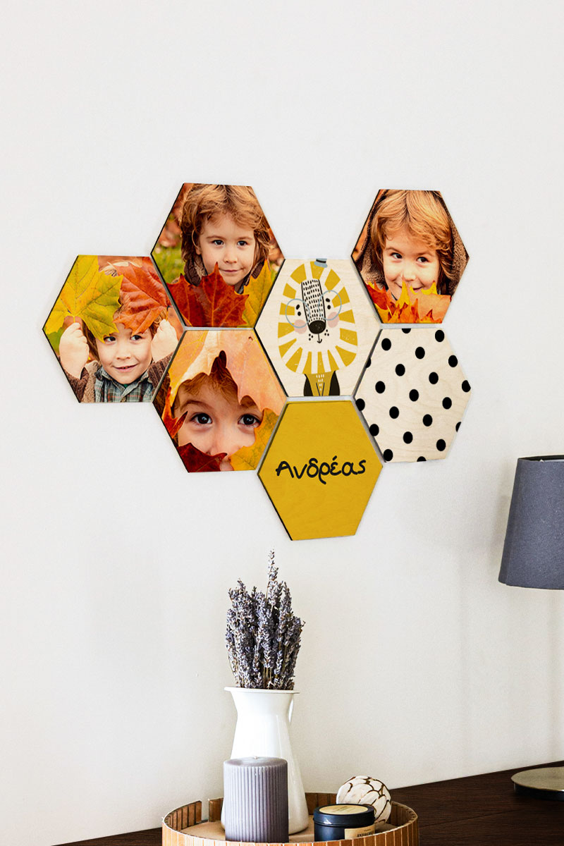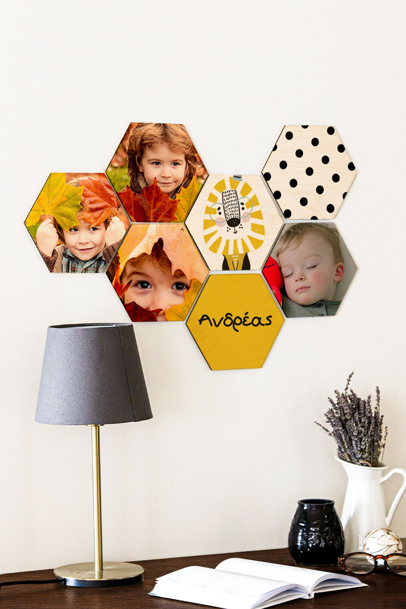 Φτιάξε online σε 1’ τα δικά σου Hex & δώσε ζωή στο χώρο σου! Κόλλησέ τα πανεύκολα στον τοίχο σου με την ειδική τους κόλλα (χωρίς καρφιά & τρύπες). Τα hex είναι εκτυπωμένα σε ξύλο για να ταιριάζουν σε κάθε χώρο!