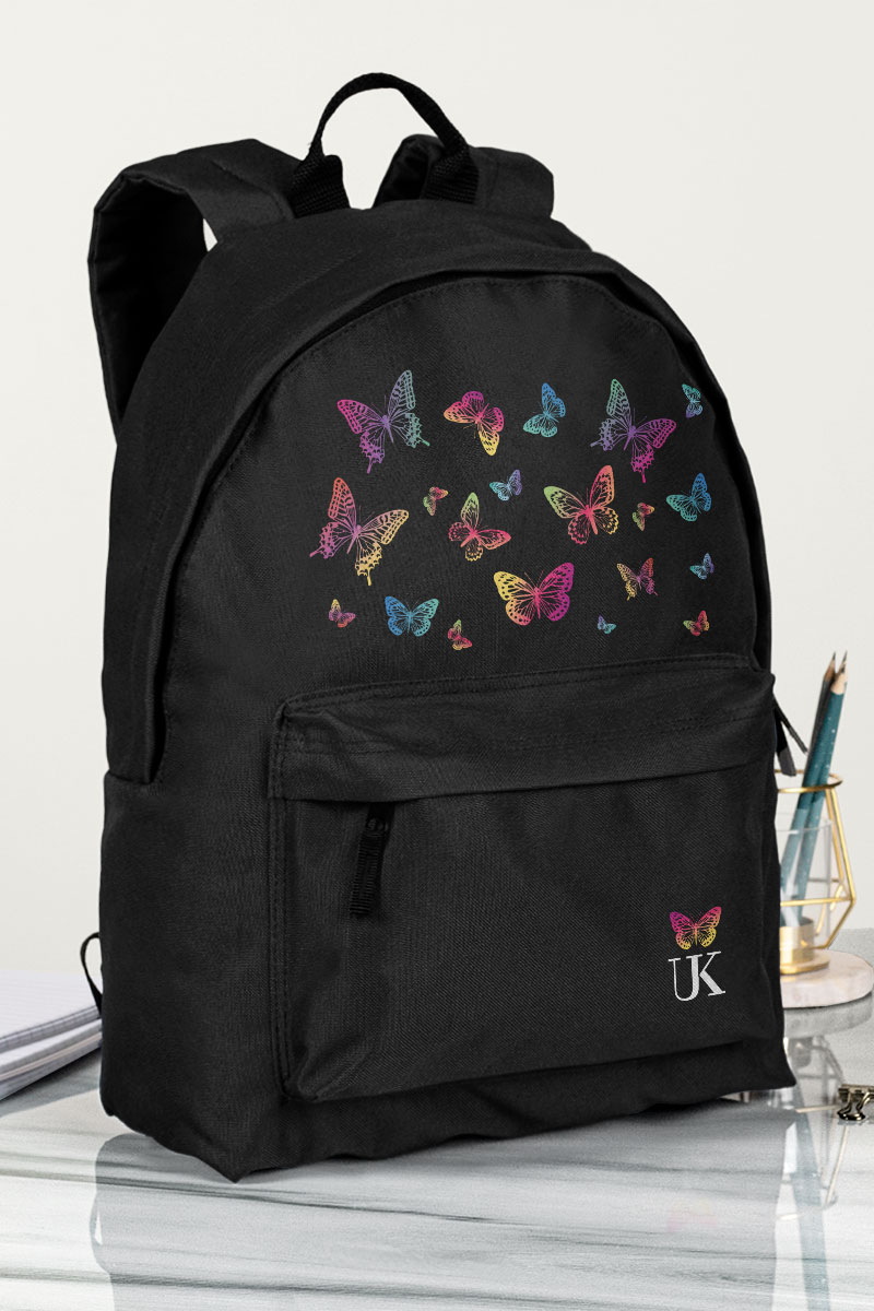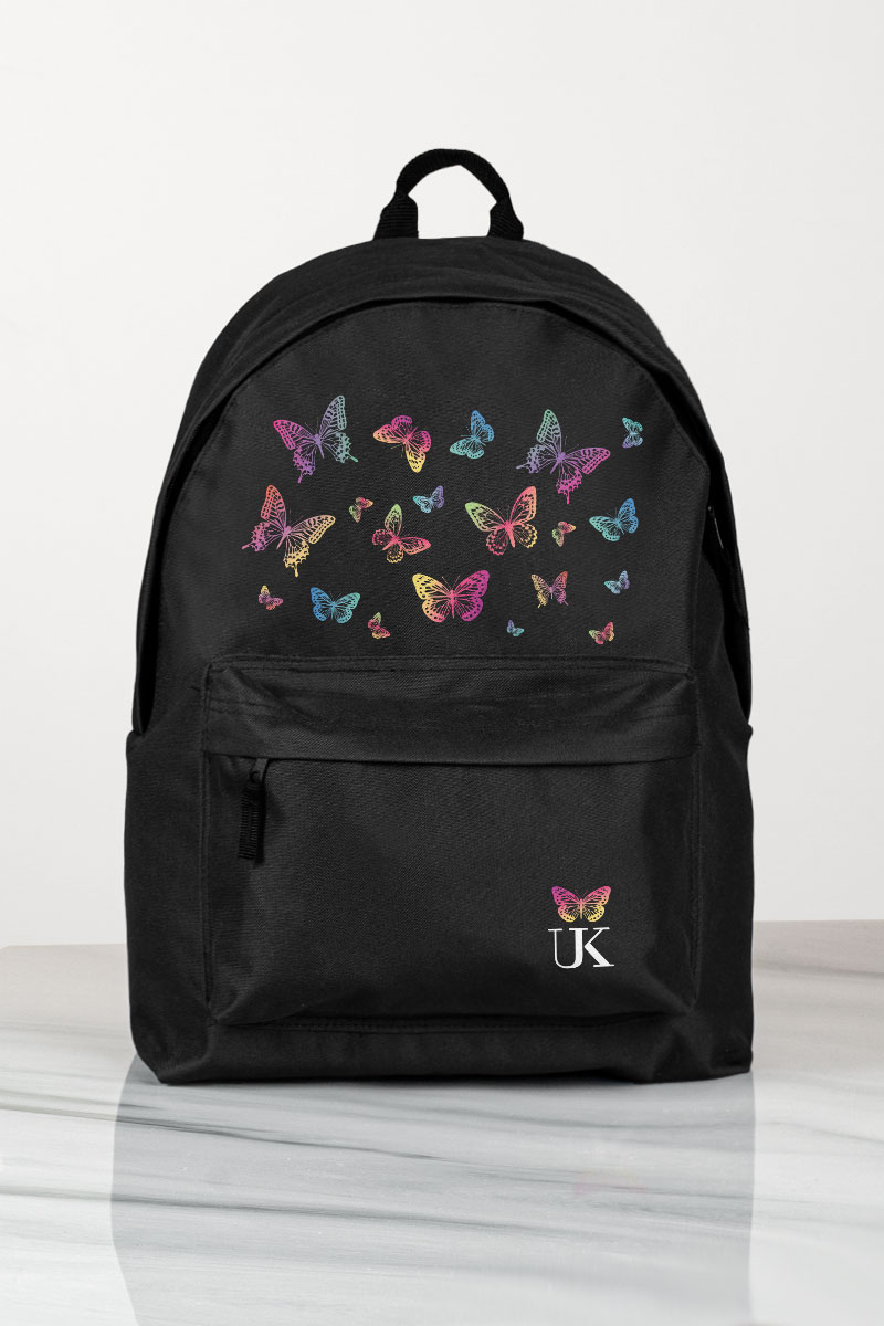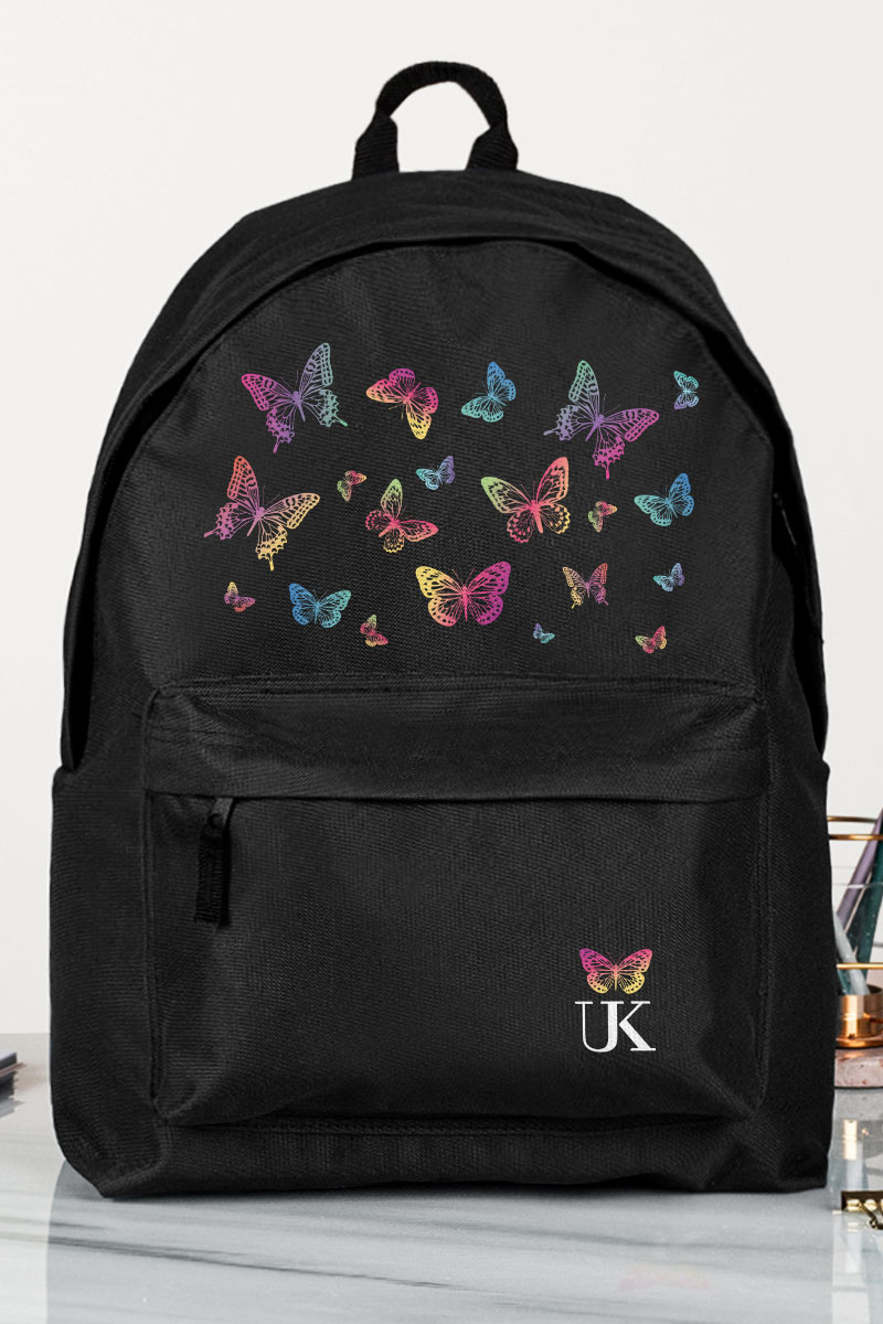Σχολική Τσάντα Δημοτικού-Γυμνασίου-Λυκείου, Μαύρο Χρώμα, Butterflies