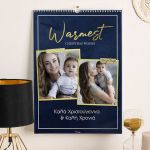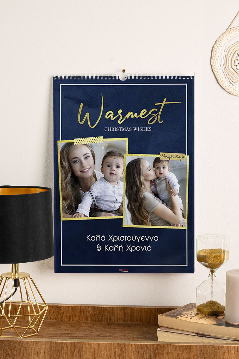 Δώδεκα μήνες γεμάτοι με τις ομορφότερες αναμνήσεις και στιγμές σας. Όπως και σε κάθε προϊόν μας, σας προσφέρουμε μία μεγάλη γκάμα πλήρως προσαρμόσιμων προτύπων ημερολογίων ώστε να τα δημιουργήσετε online. Αντλούμε έμπνευση για το σχεδιασμό από τα δημοφιλέστερα θέματα του έτους όπως τα Χριστούγεννα, τις διακοπές , την οικογένεια , τα μωρά, το Γάμο και τη Βάπτιση , τα Ρομαντικά ζευγάρια και πολλά άλλα. Απολαύστε κάθε επόμενο μήνα, καθώς περιέχει και μια διαφορετική φωτογραφία της επιλογής σας από τις ομορφότερες στιγμές σας. Θα μπορούσε να είναι ο όμορφος γάμος σας στην Αθήνα ή μια όμορφη εκδρομή σας στη Θεσσαλονίκη, εκείνη η αξέχαστη νύχτα στη Σαντορίνη ή οι διακοπές με τους φίλους σας στην Πάρο.