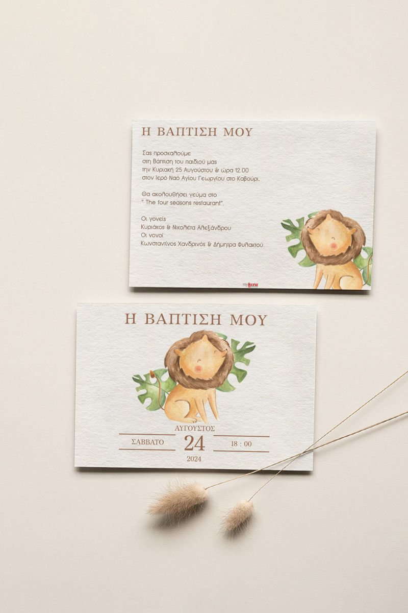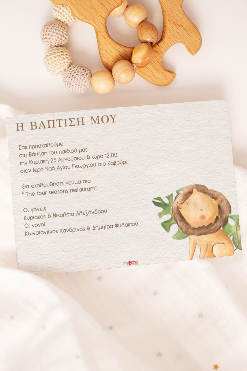 Πρόσκληση Βάπτισης με Σχέδιο Baby Lion