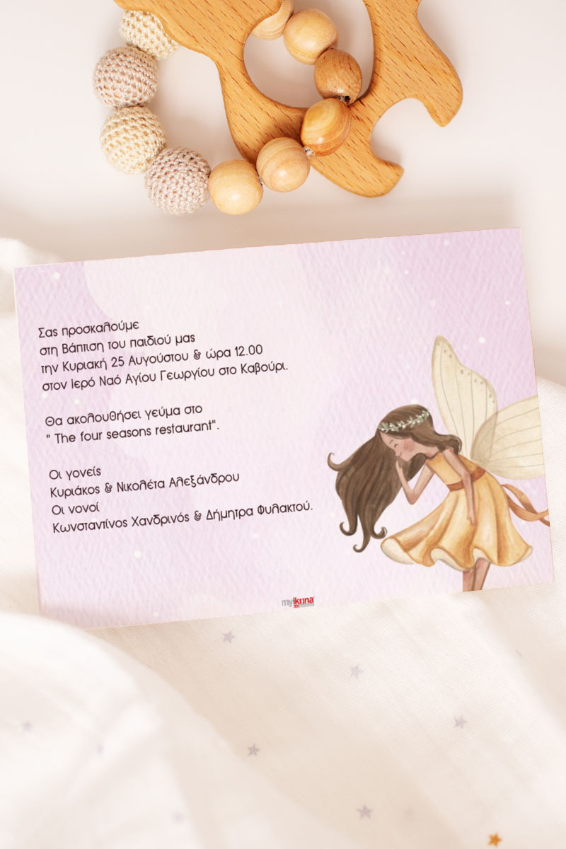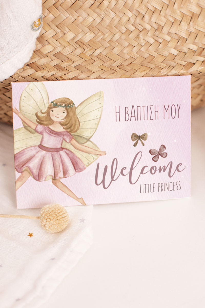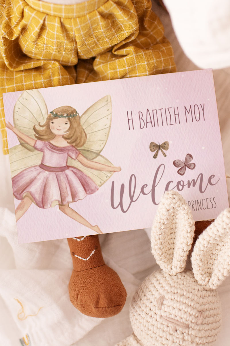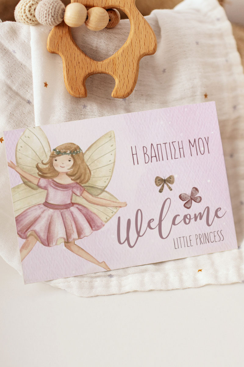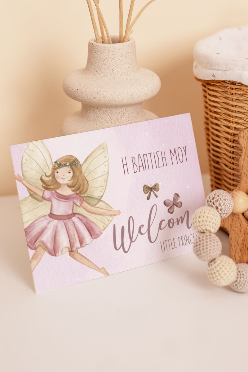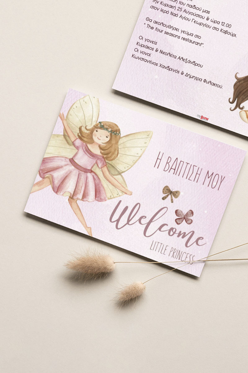 Πρόσκληση Βάπτισης με Σχέδιο Butterfly Princess
