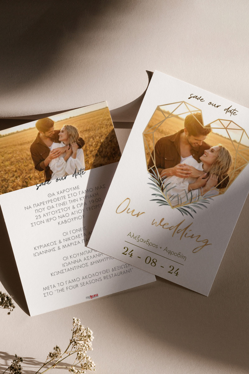 Αποκτήστε τα προσκλητήρια γάμου με σχέδιο Minimal Elegance. Οι πελάτες μας τα ξεχωρίζουν για το υψηλής ποιότητας ιταλικό χαρτί και την εκτύπωση υψηλής ευκρίνειας Myikona High Definition. Διαθέσιμα σε διαφορετικές διαστάσεις.