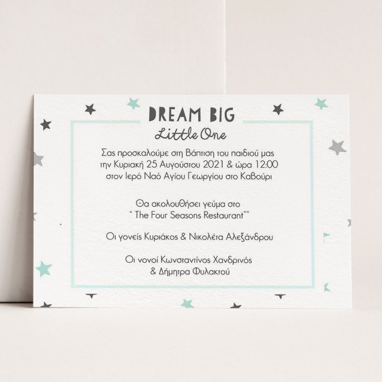 Πρόσκληση Βάπτισης με Σχέδιο Dream Big Boy