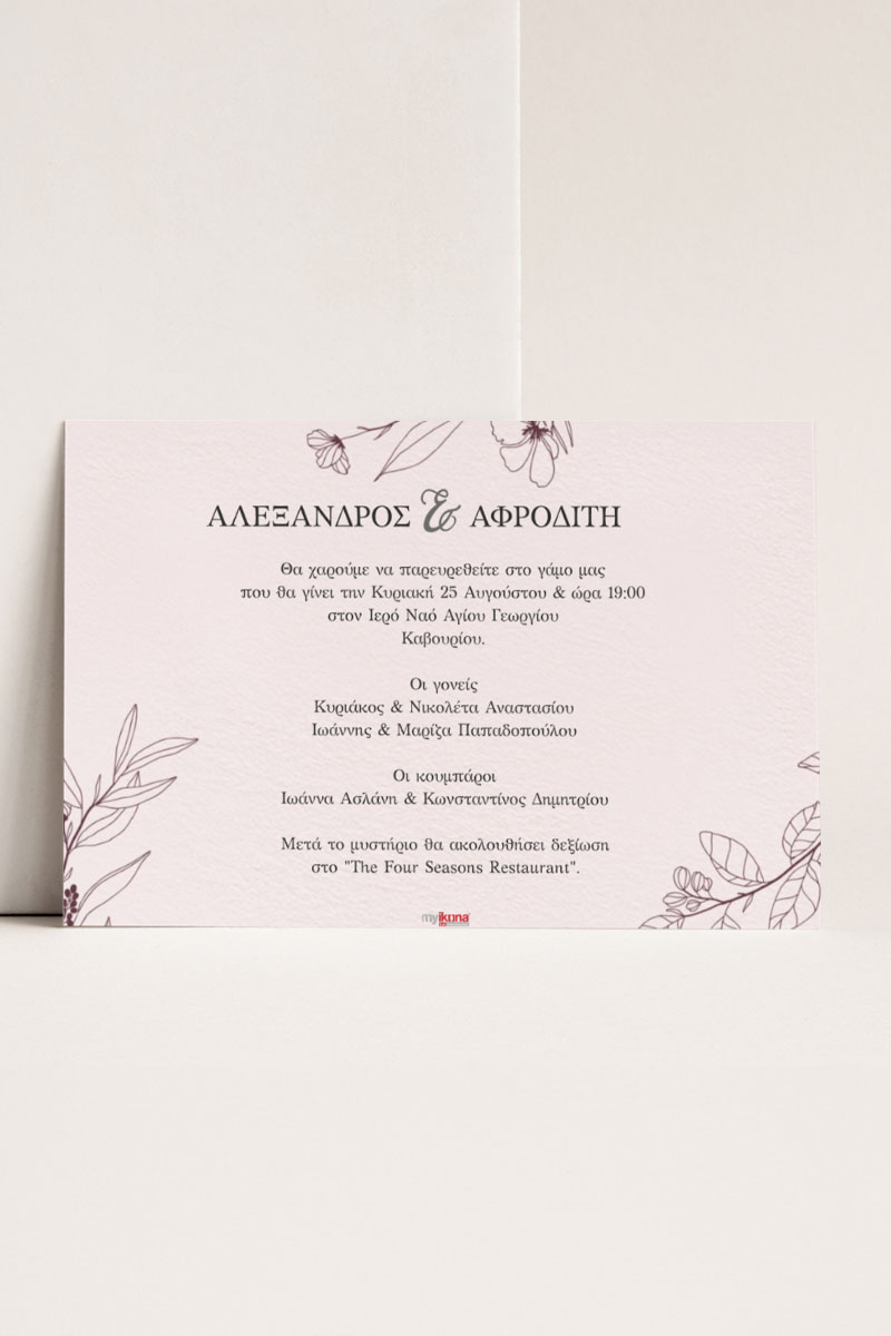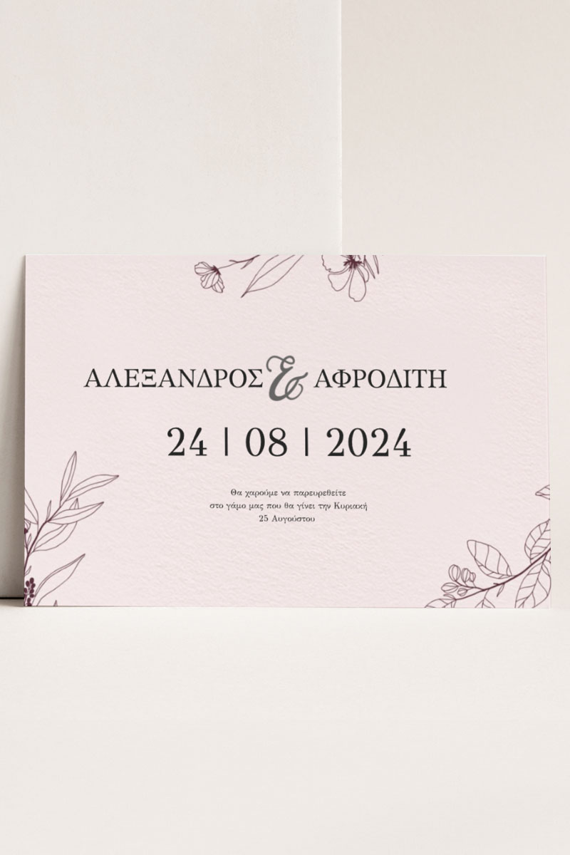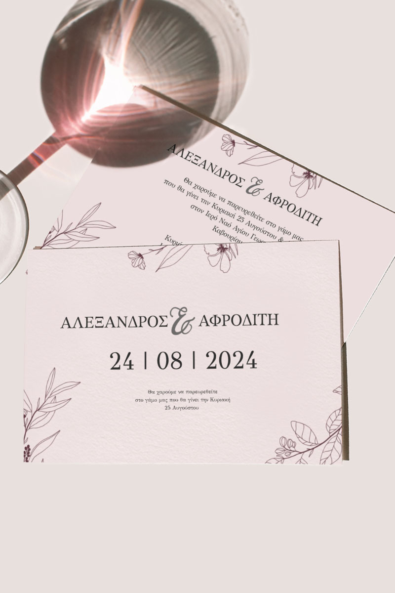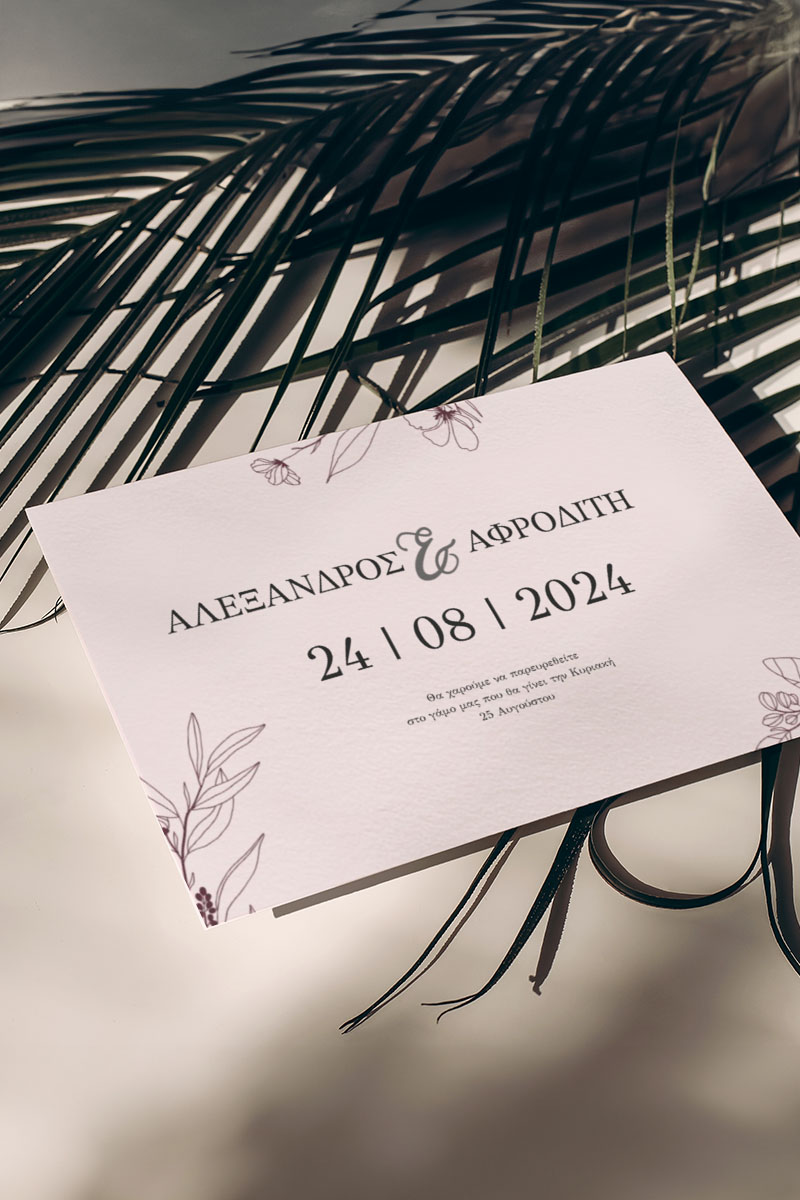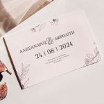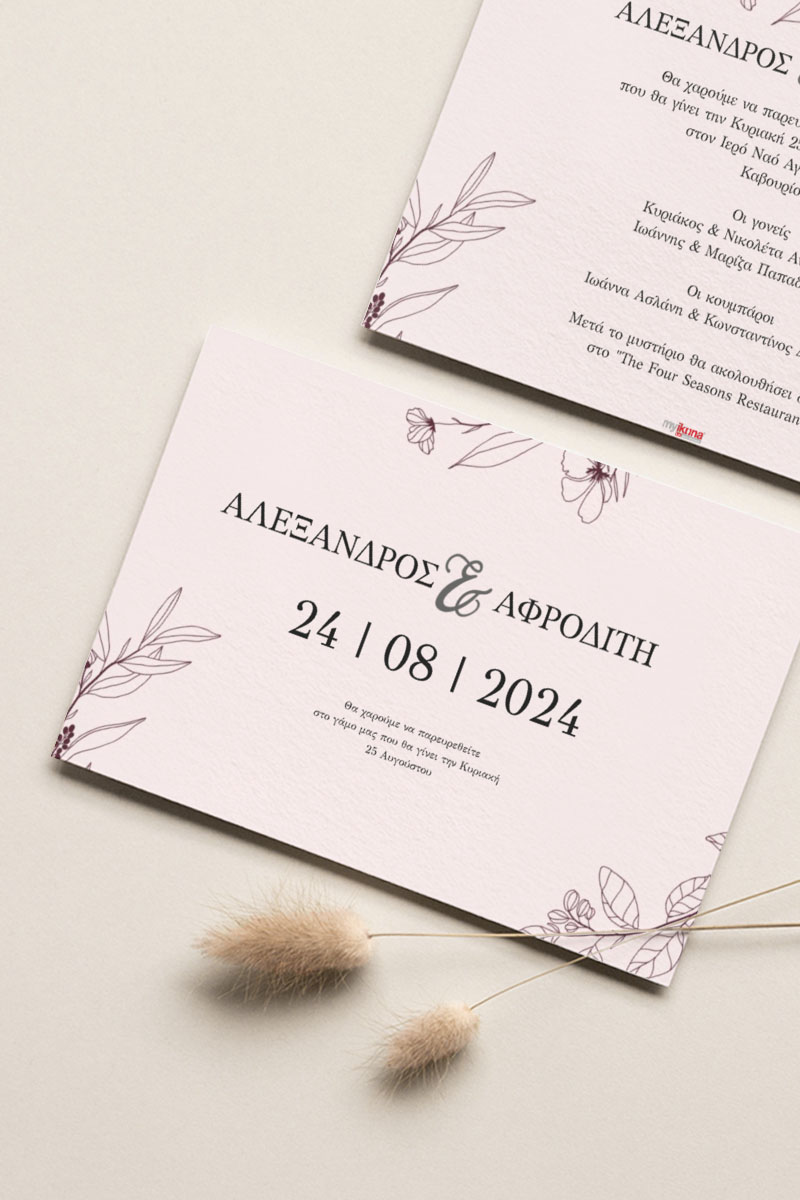 Αποκτήστε τα προσκλητήρια γάμου με σχέδιο Minimal Ανθισμένα Λουλούδια. Οι πελάτες μας τα ξεχωρίζουν για το υψηλής ποιότητας ιταλικό χαρτί και την εκτύπωση υψηλής ευκρίνειας Myikona High Definition. Διαθέσιμα σε διαφορετικές διαστάσεις.