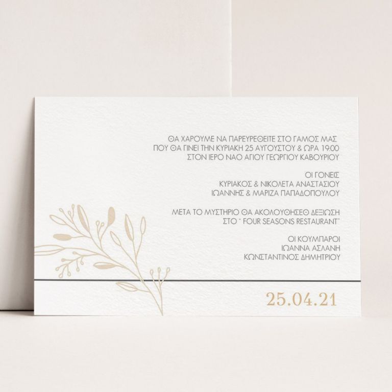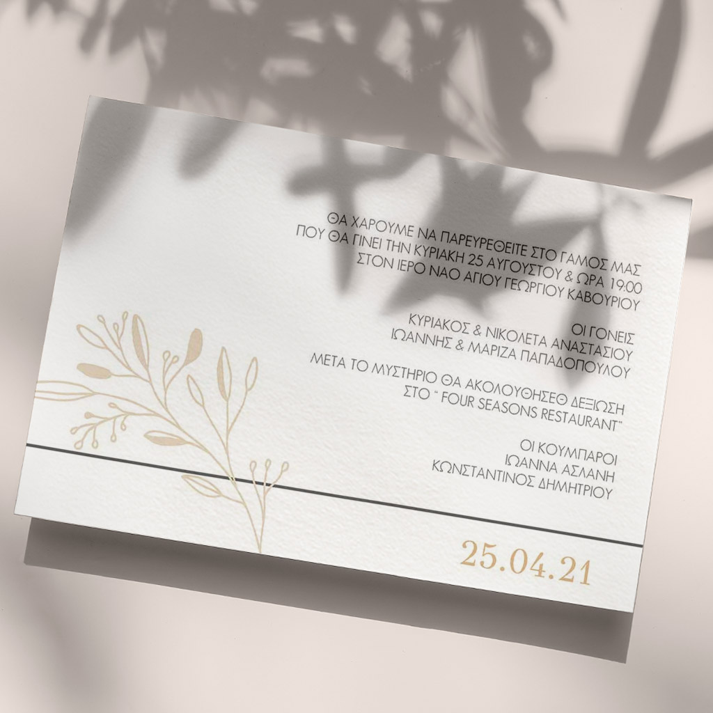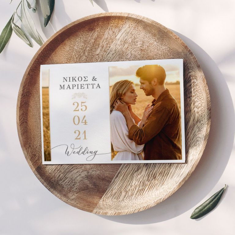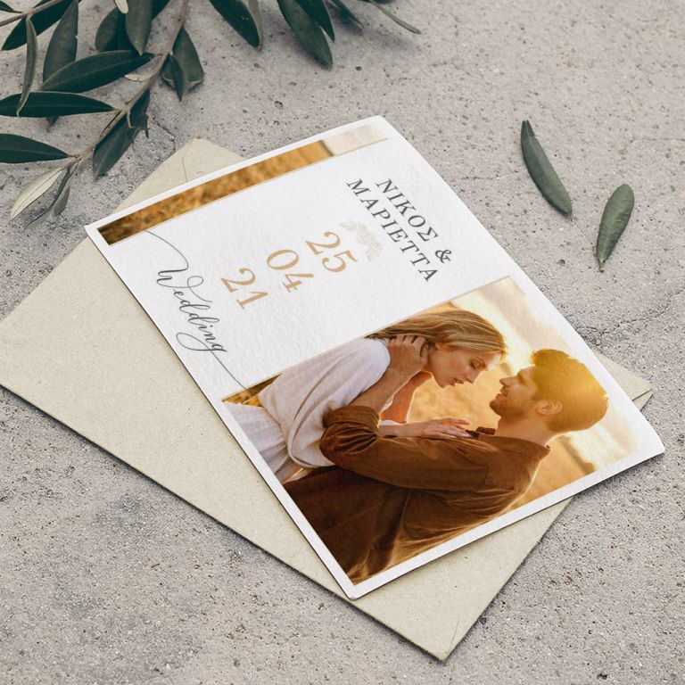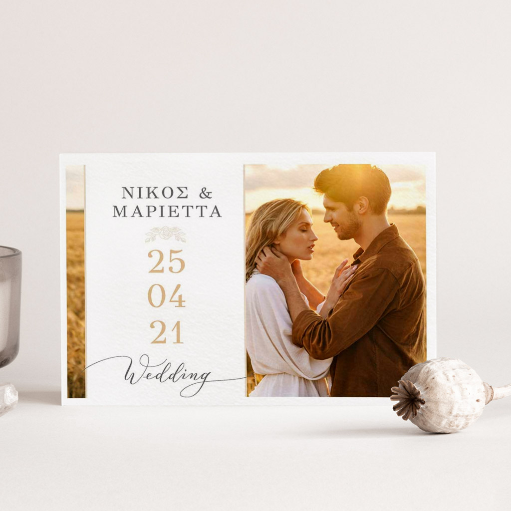 Αποκτήστε τα προσκλητήρια γάμου με σχέδιο Minimal Elegance. Οι πελάτες μας τα ξεχωρίζουν για το υψηλής ποιότητας ιταλικό χαρτί και την εκτύπωση υψηλής ευκρίνειας Myikona High Definition. Διαθέσιμα σε διαφορετικές διαστάσεις.