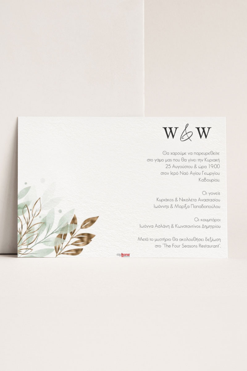 Αποκτήστε τα προσκλητήρια γάμου με σχέδιο Minimal Elegance. Οι πελάτες μας τα ξεχωρίζουν για το υψηλής ποιότητας ιταλικό χαρτί και την εκτύπωση υψηλής ευκρίνειας Myikona High Definition. Διαθέσιμα σε διαφορετικές διαστάσεις.