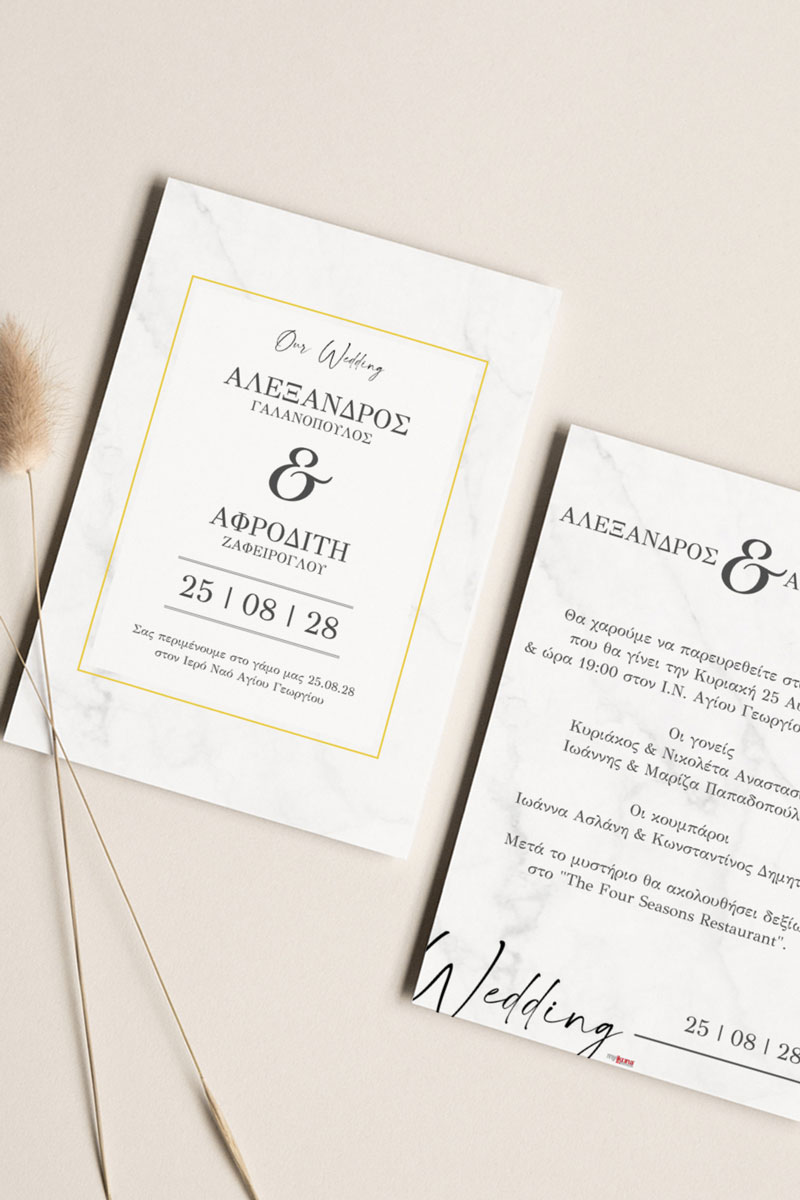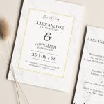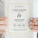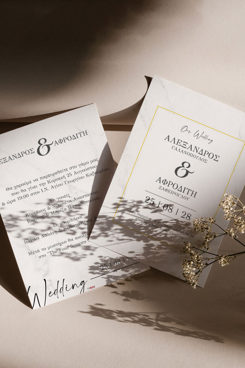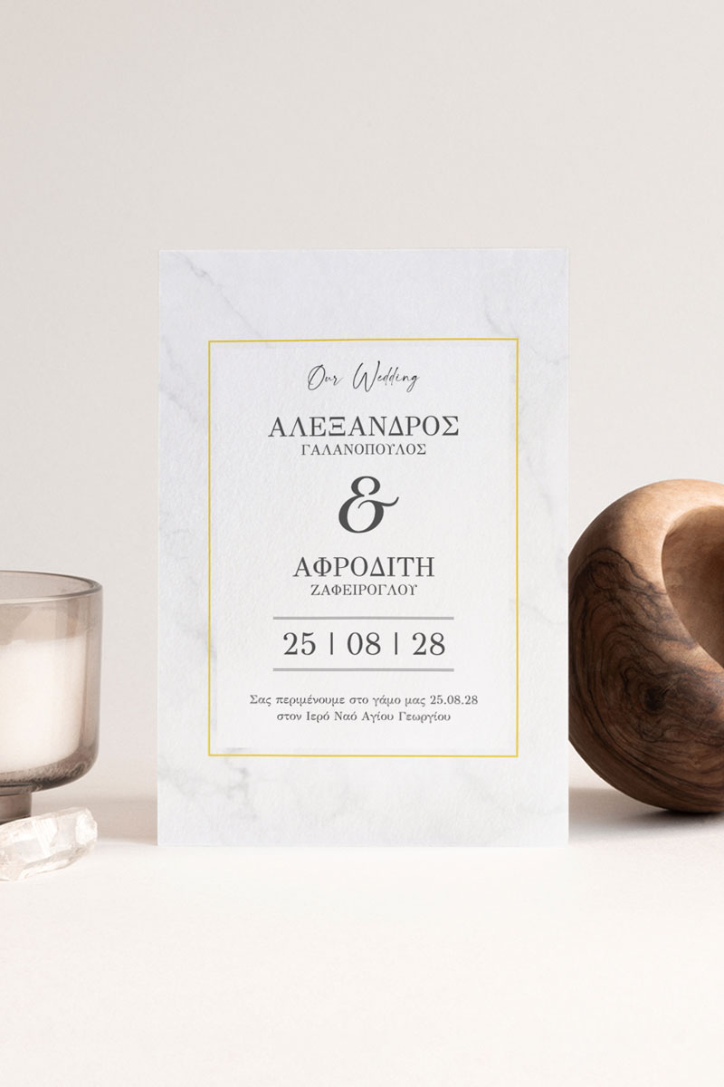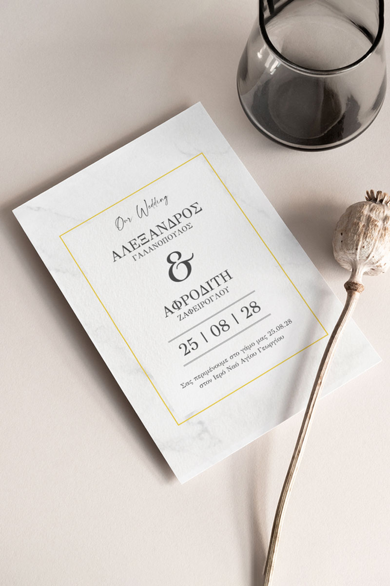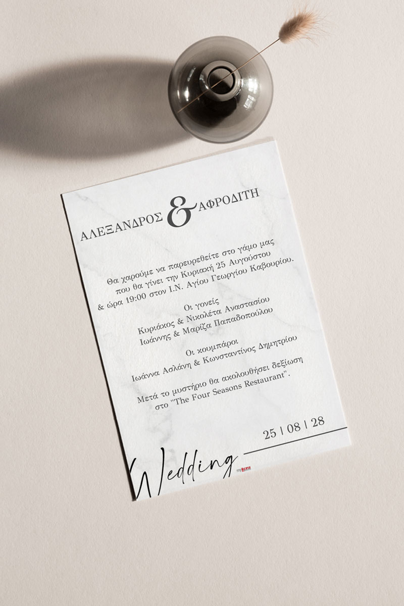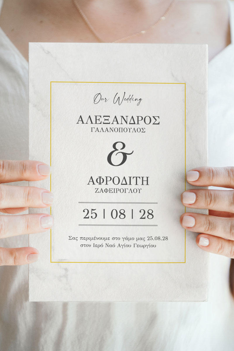 Αποκτήστε τα προσκλητήρια γάμου με σχέδιο Minimal Elegance. Οι πελάτες μας τα ξεχωρίζουν για το υψηλής ποιότητας ιταλικό χαρτί και την εκτύπωση υψηλής ευκρίνειας Myikona High Definition. Διαθέσιμα σε διαφορετικές διαστάσεις.