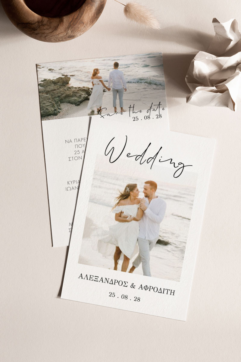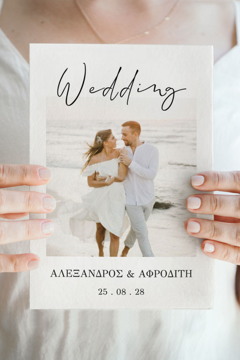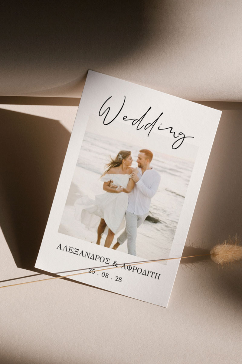 Αποκτήστε τα προσκλητήρια γάμου με σχέδιο Minimal Elegance. Οι πελάτες μας τα ξεχωρίζουν για το υψηλής ποιότητας ιταλικό χαρτί και την εκτύπωση υψηλής ευκρίνειας Myikona High Definition. Διαθέσιμα σε διαφορετικές διαστάσεις.