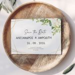 Αποκτήστε τα προσκλητήρια γάμου με σχέδιο Minimal Elegance. Οι πελάτες μας τα ξεχωρίζουν για το υψηλής ποιότητας ιταλικό χαρτί και την εκτύπωση υψηλής ευκρίνειας Myikona High Definition. Διαθέσιμα σε διαφορετικές διαστάσεις.