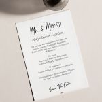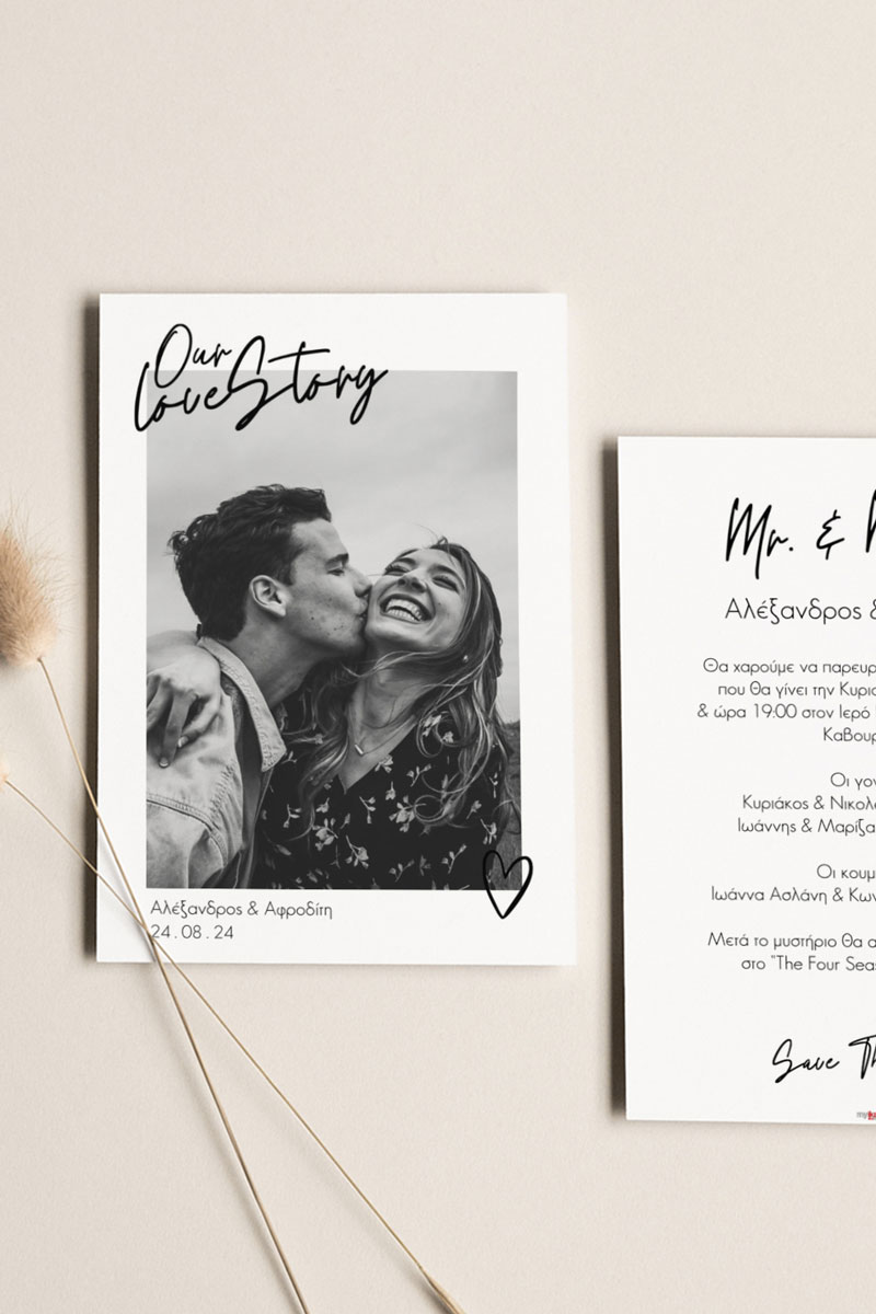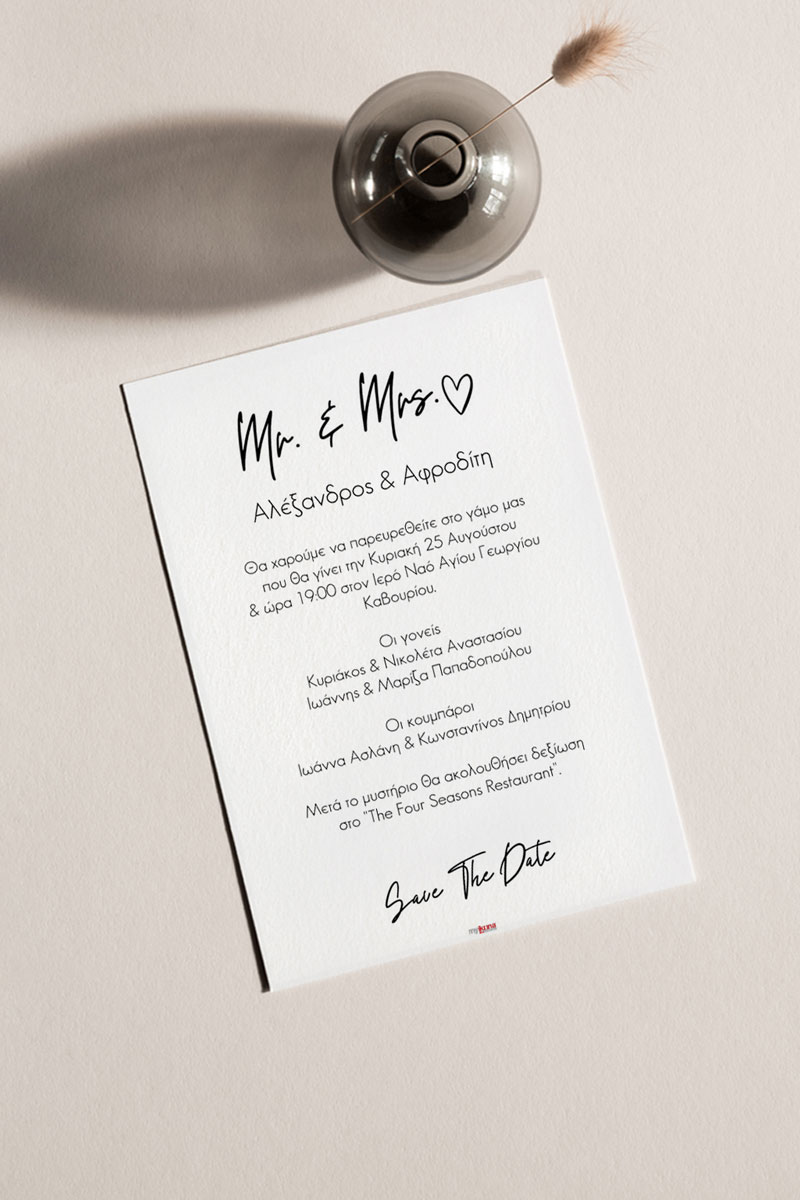 Αποκτήστε τα προσκλητήρια γάμου με σχέδιο Minimal Elegance. Οι πελάτες μας τα ξεχωρίζουν για το υψηλής ποιότητας ιταλικό χαρτί και την εκτύπωση υψηλής ευκρίνειας Myikona High Definition. Διαθέσιμα σε διαφορετικές διαστάσεις.