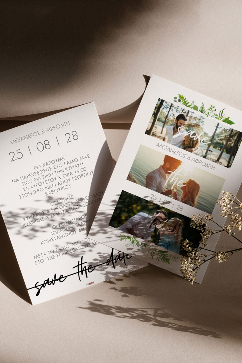 Αποκτήστε τα προσκλητήρια γάμου με σχέδιο Minimal Elegance. Οι πελάτες μας τα ξεχωρίζουν για το υψηλής ποιότητας ιταλικό χαρτί και την εκτύπωση υψηλής ευκρίνειας Myikona High Definition. Διαθέσιμα σε διαφορετικές διαστάσεις.