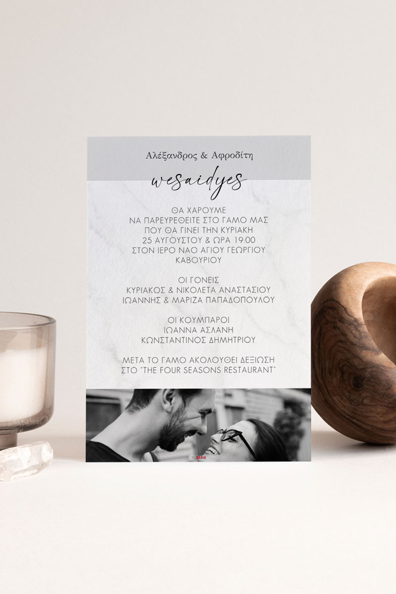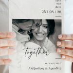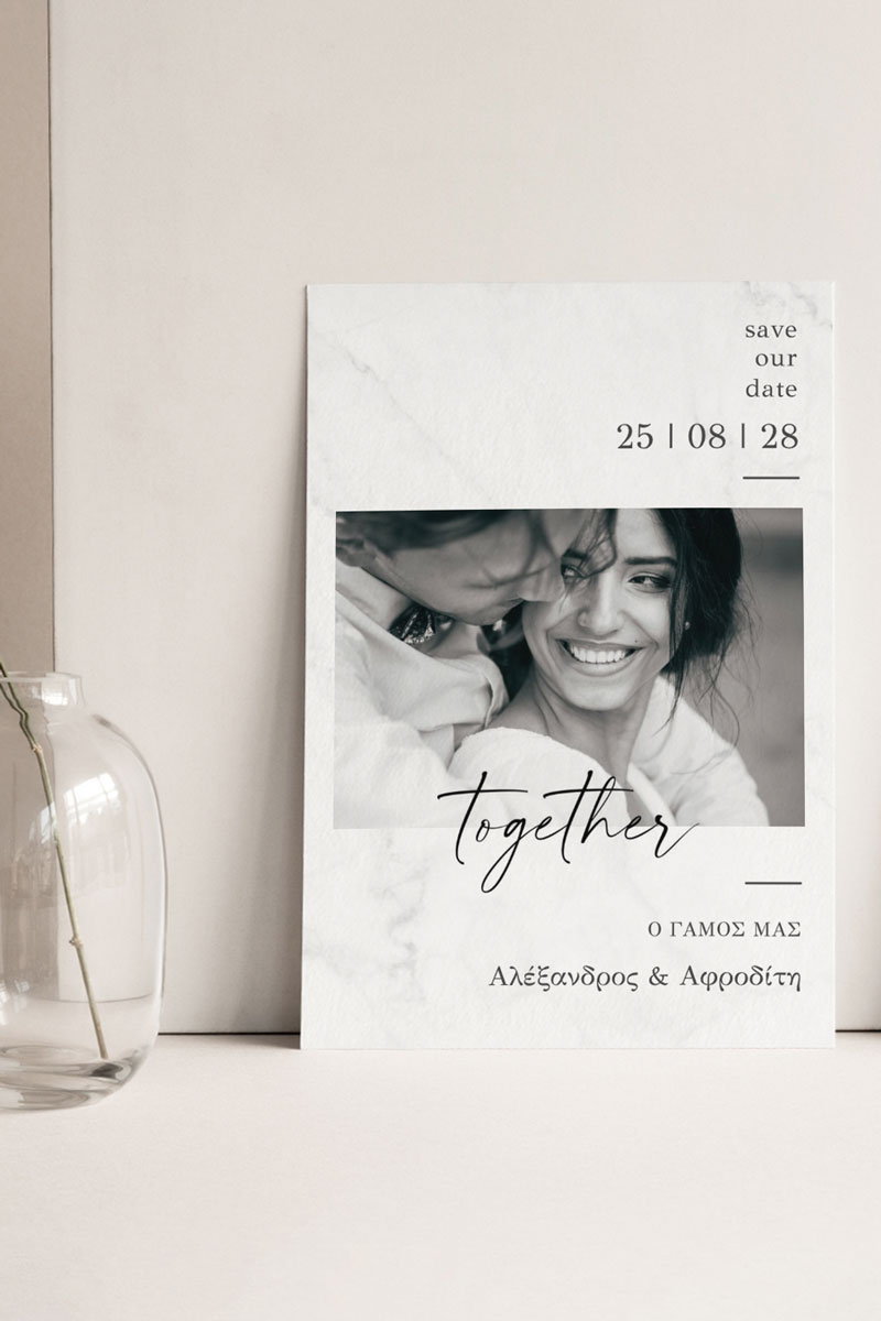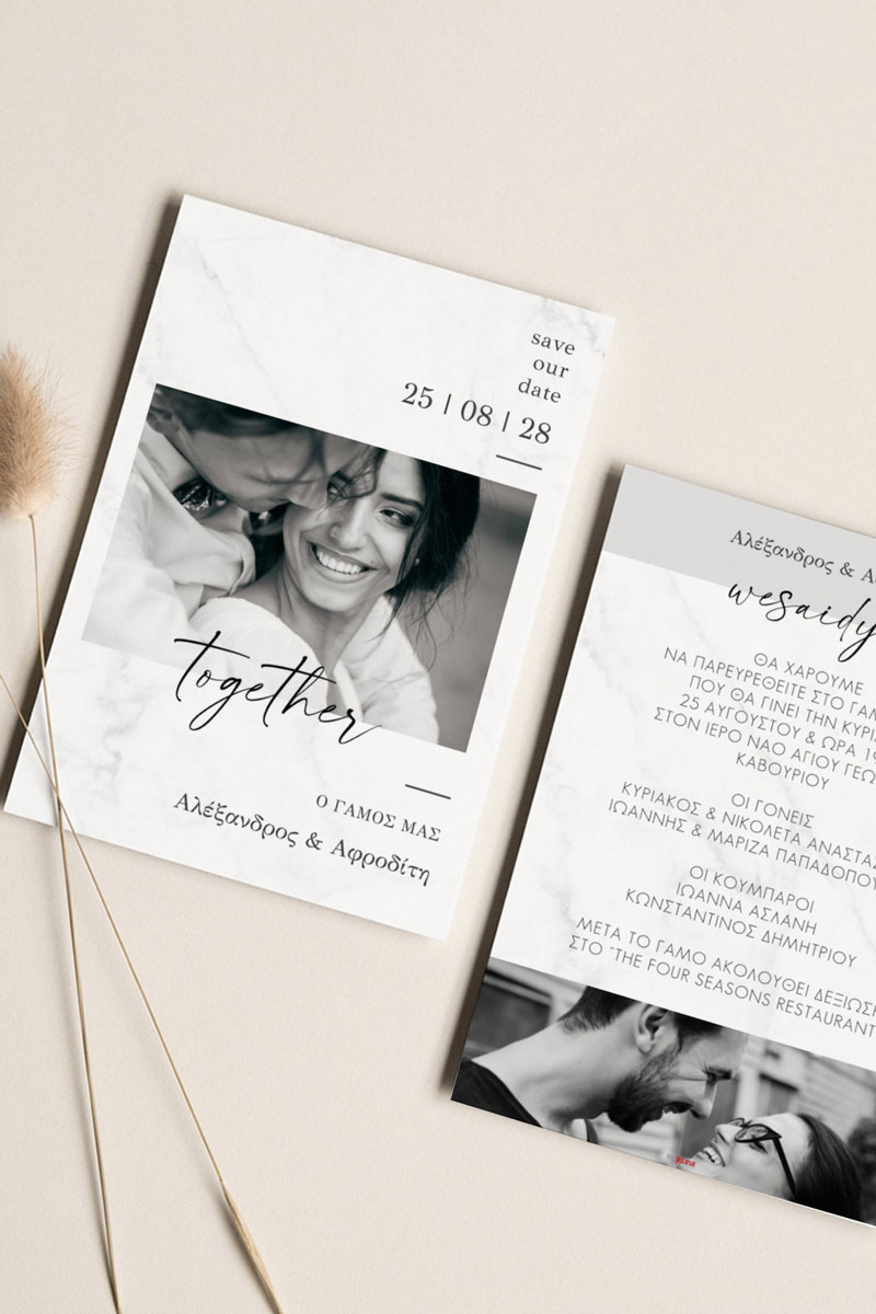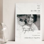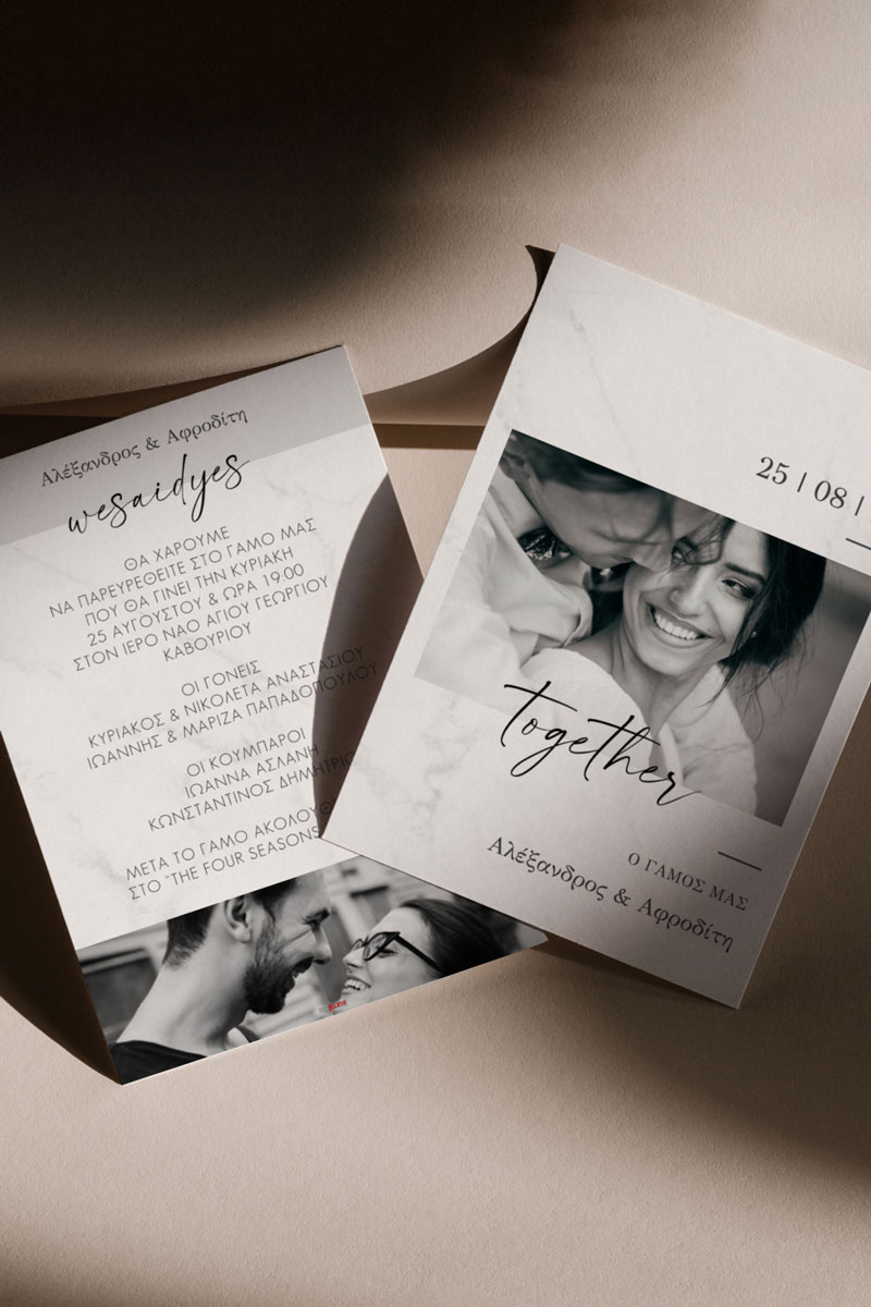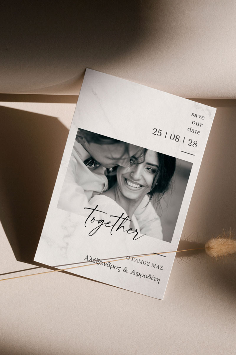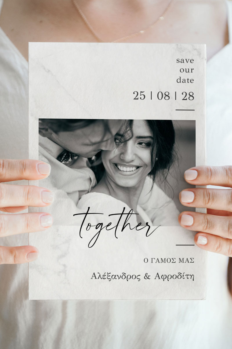Αποκτήστε τα προσκλητήρια γάμου με σχέδιο Minimal Elegance. Οι πελάτες μας τα ξεχωρίζουν για το υψηλής ποιότητας ιταλικό χαρτί και την εκτύπωση υψηλής ευκρίνειας Myikona High Definition. Διαθέσιμα σε διαφορετικές διαστάσεις.