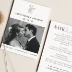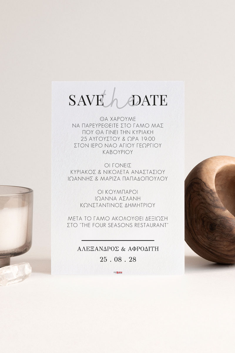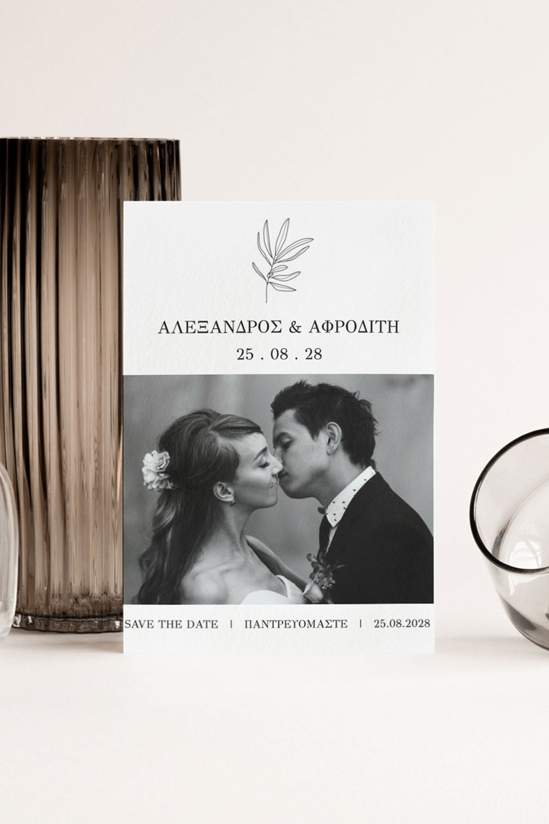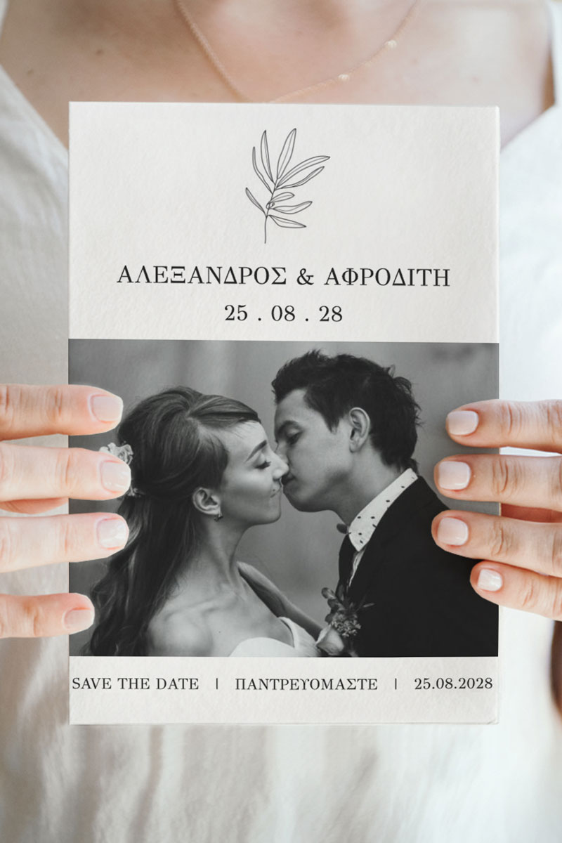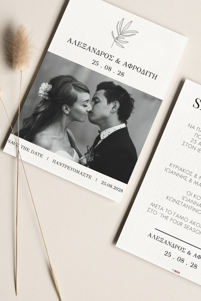 Αποκτήστε τα προσκλητήρια γάμου με σχέδιο Minimal Elegance. Οι πελάτες μας τα ξεχωρίζουν για το υψηλής ποιότητας ιταλικό χαρτί και την εκτύπωση υψηλής ευκρίνειας Myikona High Definition. Διαθέσιμα σε διαφορετικές διαστάσεις.