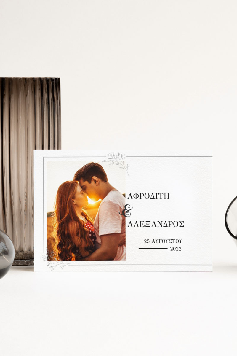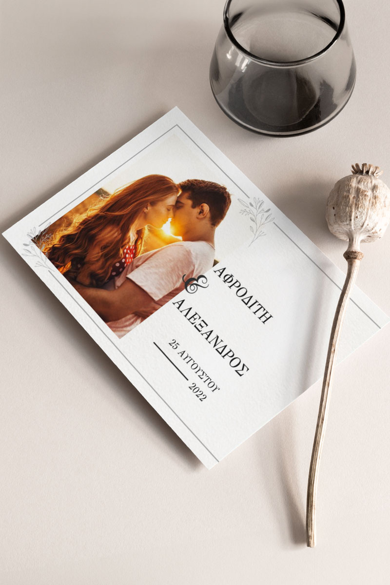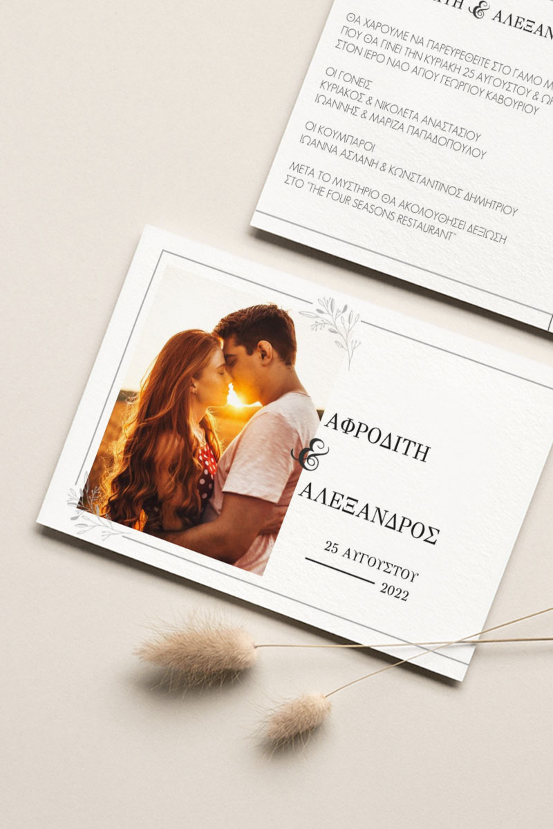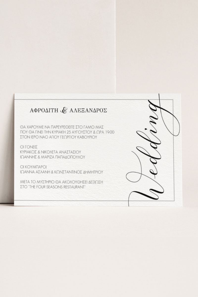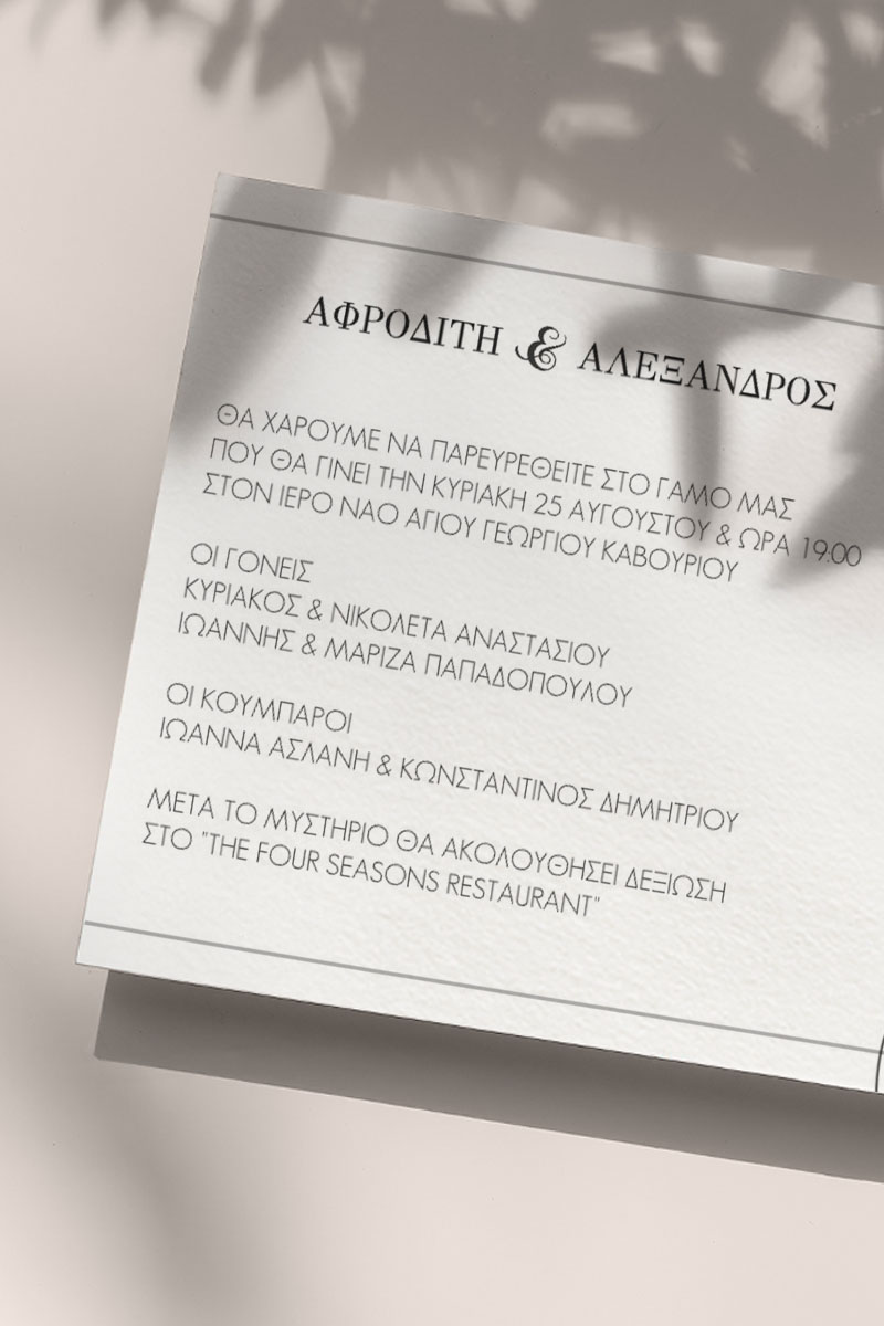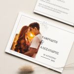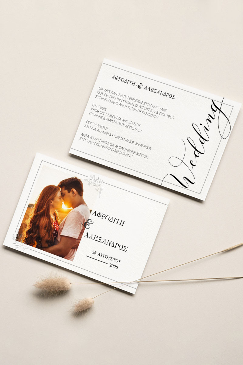 Αποκτήστε τα προσκλητήρια γάμου με σχέδιο Minimal Elegance. Οι πελάτες μας τα ξεχωρίζουν για το υψηλής ποιότητας ιταλικό χαρτί και την εκτύπωση υψηλής ευκρίνειας Myikona High Definition. Διαθέσιμα σε διαφορετικές διαστάσεις.