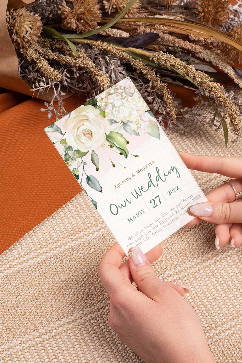 Αποκτήστε τα προσκλητήρια γάμου με σχέδιο Minimal Ανθισμένα Λουλούδια. Οι πελάτες μας τα ξεχωρίζουν για το υψηλής ποιότητας ιταλικό χαρτί και την εκτύπωση υψηλής ευκρίνειας Myikona High Definition. Διαθέσιμα σε διαφορετικές διαστάσεις.