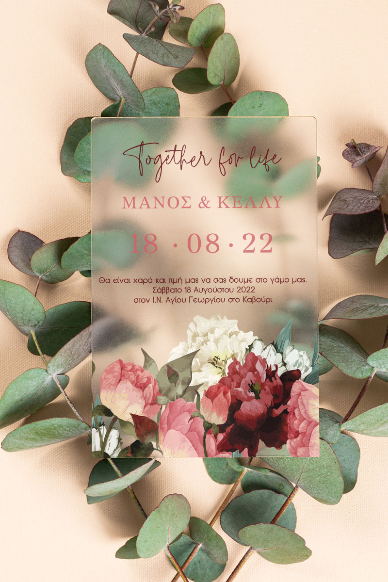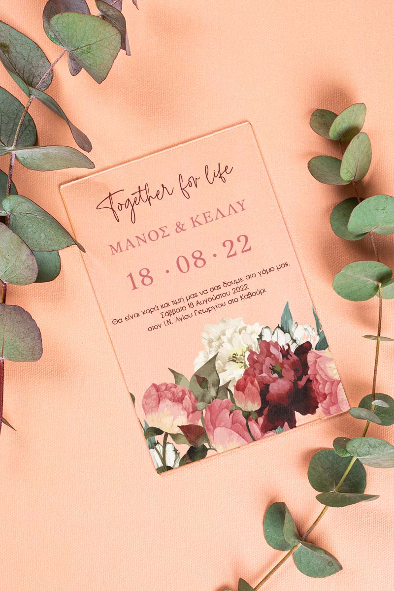 Αποκτήστε τα προσκλητήρια γάμου με σχέδιο Boho Κόκκινα Λουλούδια. Οι πελάτες μας τα ξεχωρίζουν για το υψηλής ποιότητας ιταλικό χαρτί και την εκτύπωση υψηλής ευκρίνειας Myikona High Definition. Διαθέσιμα σε διαφορετικές διαστάσεις.
