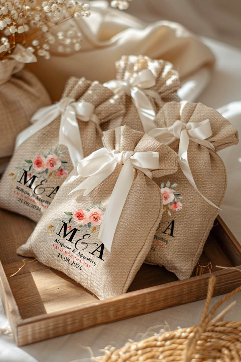 1.59€Μοντέρνες και Πρωτότυπες Μπομπονιέρες Γάμου με Πουγκί από Καμβά | Σετ Πουγκί, Εσωτερικό Τούλι & Κορδέλα Σατέν | Premium ποιότητα