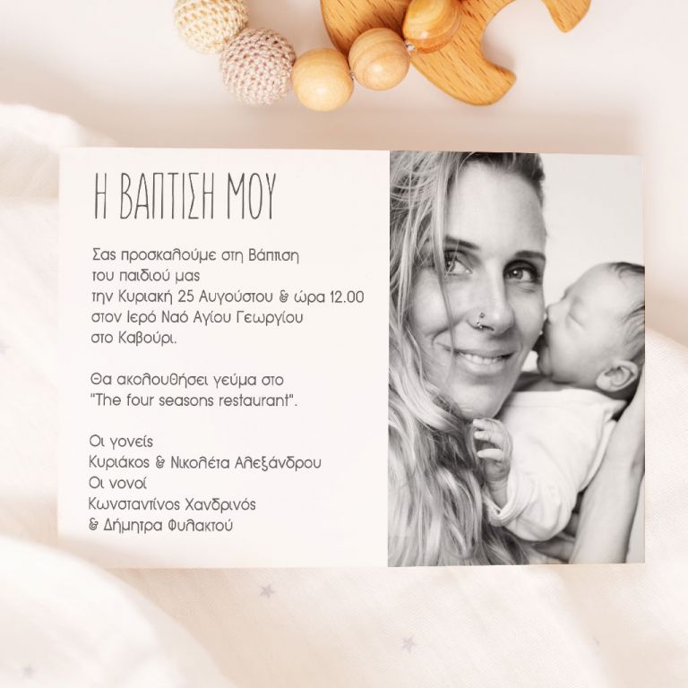 Προσκαλέστε επίσημα τους φίλους, την οικογένεια και τους αγαπημένους σας στο μυστήριο της Βάπτισης του αγοριού σας ή του κοριτσιού σας με το ομορφότερο προσκλητήριο Βάπτισης! Είτε πρόκειται για μια vintage ή ρομαντική Βάπτιση στην Αθήνα, είτε για μια πρωτότυπη Βάπτιση στη Θεσσαλονίκη, θα δημιουργήσετε μια μοναδική πρόσκληση ακριβώς όπως την έχετε ονειρευτεί