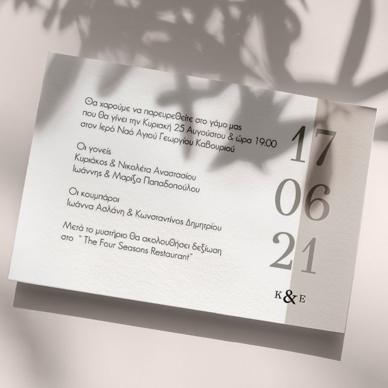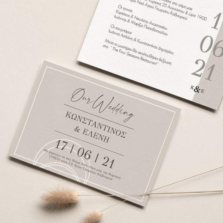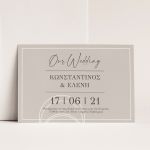 Αποκτήστε τα προσκλητήρια γάμου με σχέδιο Minimal Elegance. Οι πελάτες μας τα ξεχωρίζουν για το υψηλής ποιότητας ιταλικό χαρτί και την εκτύπωση υψηλής ευκρίνειας Myikona High Definition. Διαθέσιμα σε διαφορετικές διαστάσεις.
