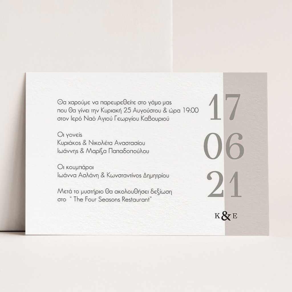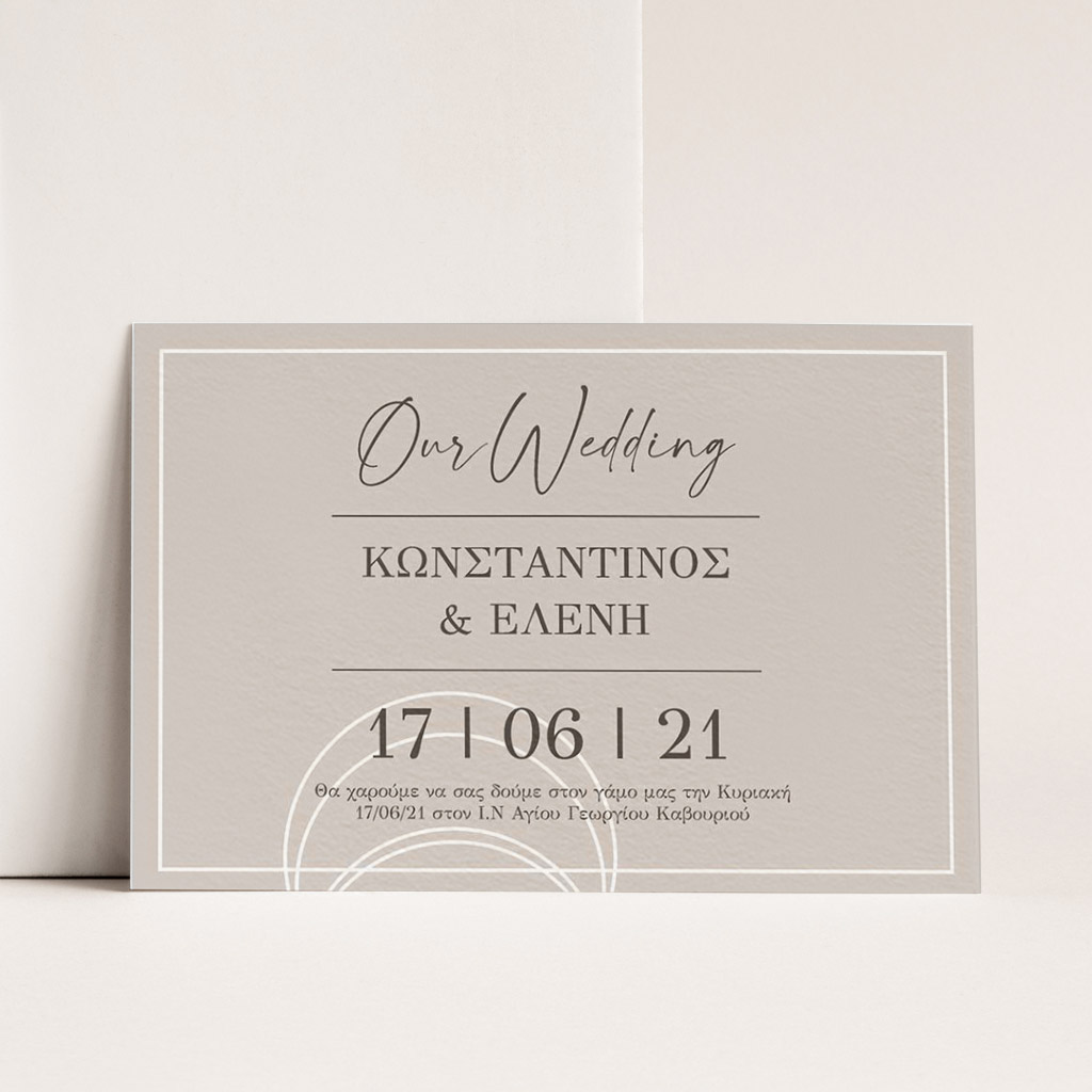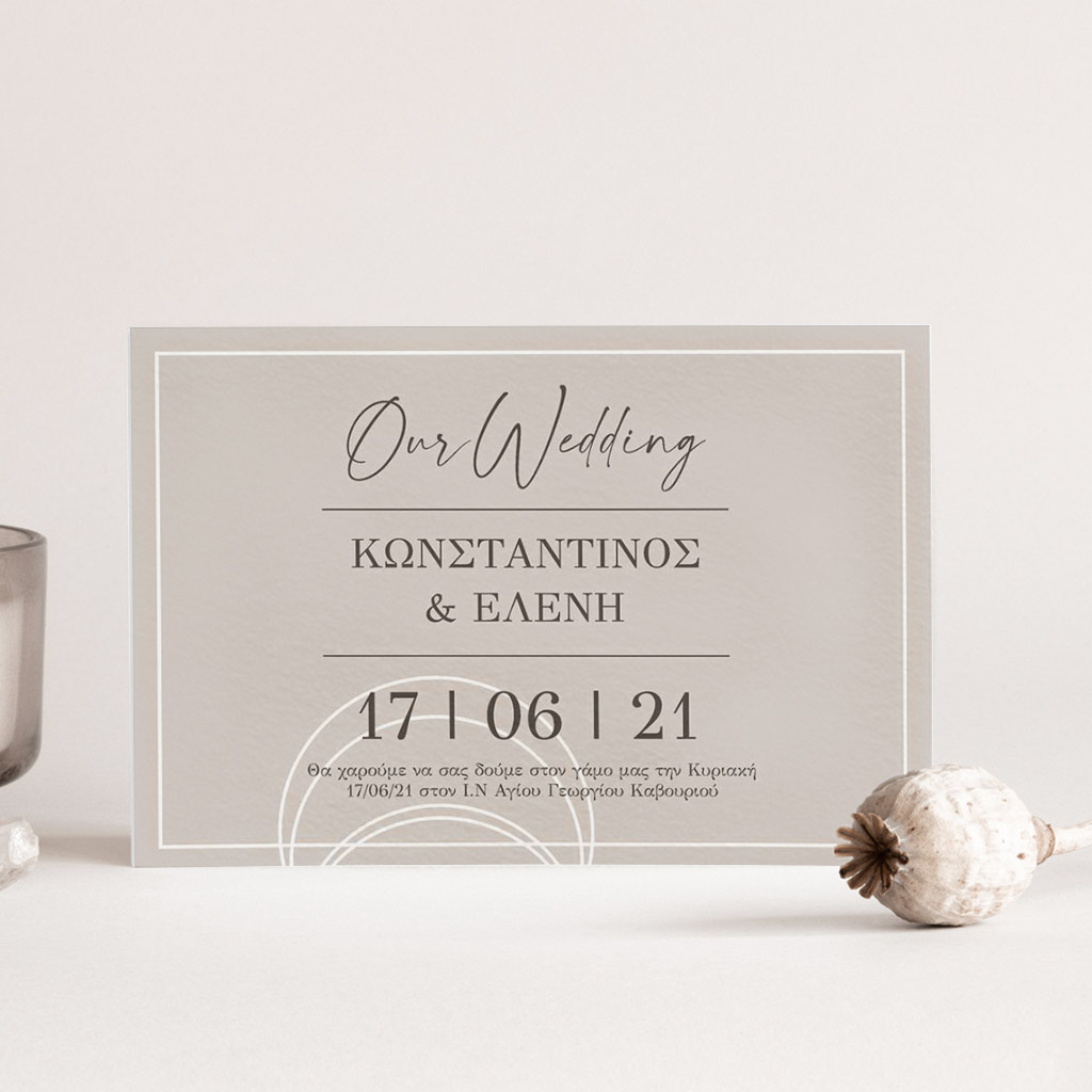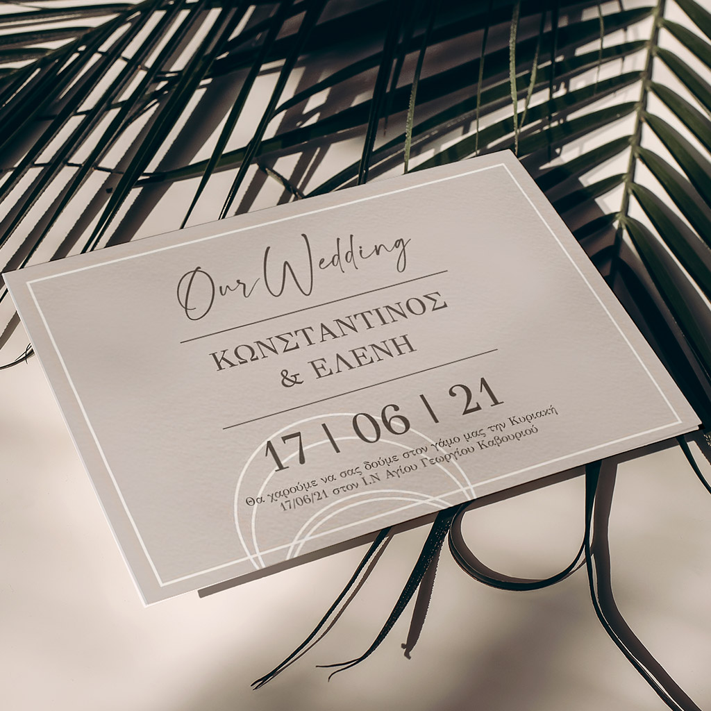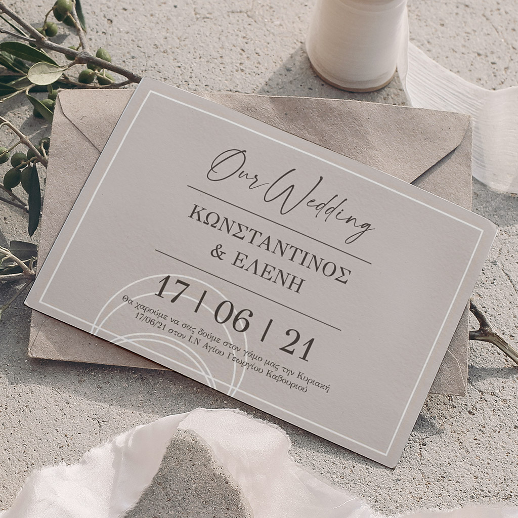 Αποκτήστε τα προσκλητήρια γάμου με σχέδιο Minimal Elegance. Οι πελάτες μας τα ξεχωρίζουν για το υψηλής ποιότητας ιταλικό χαρτί και την εκτύπωση υψηλής ευκρίνειας Myikona High Definition. Διαθέσιμα σε διαφορετικές διαστάσεις.