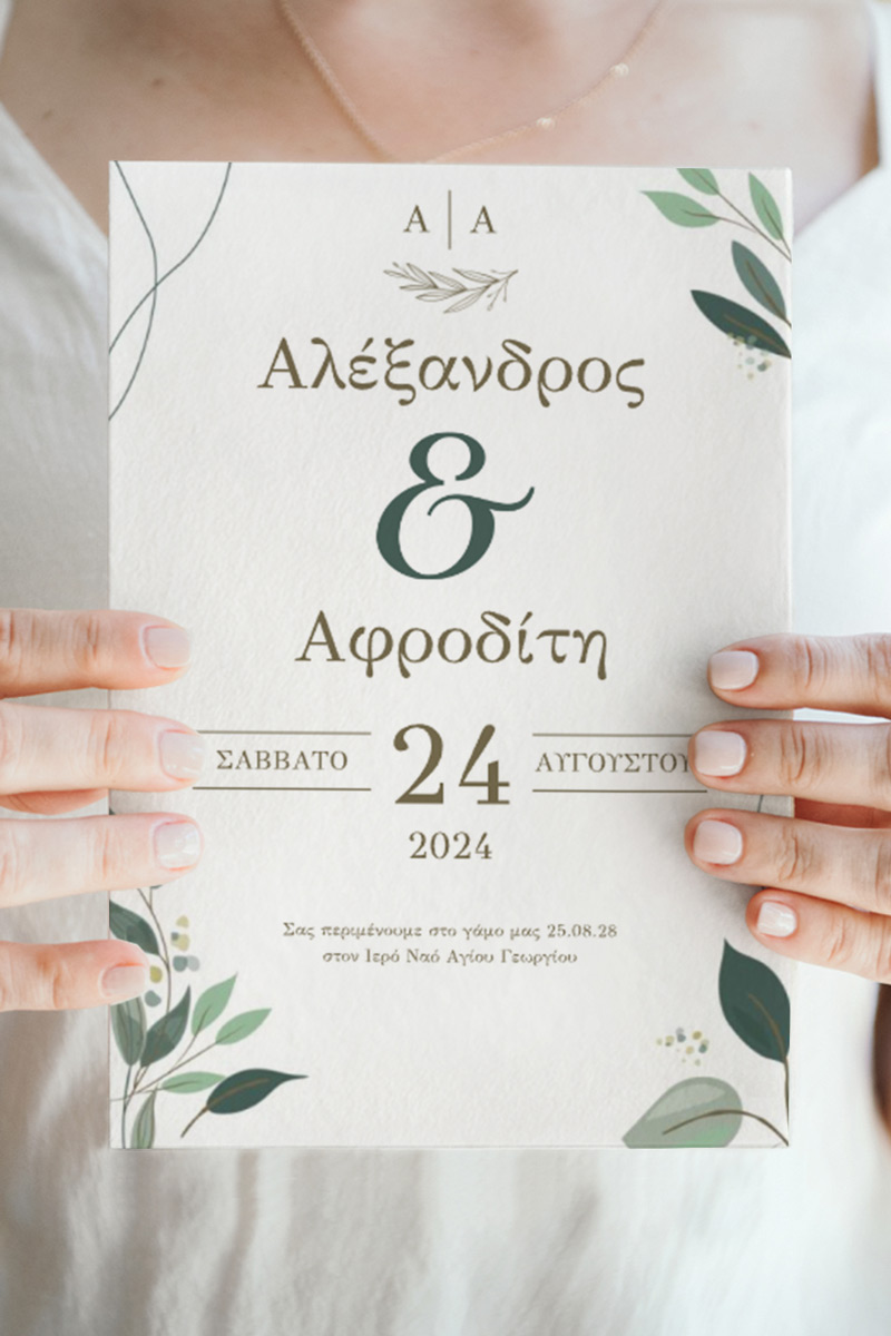 Αποκτήστε τα προσκλητήρια γάμου με σχέδιο Minimal Elegance. Οι πελάτες μας τα ξεχωρίζουν για το υψηλής ποιότητας ιταλικό χαρτί και την εκτύπωση υψηλής ευκρίνειας Myikona High Definition. Διαθέσιμα σε διαφορετικές διαστάσεις.