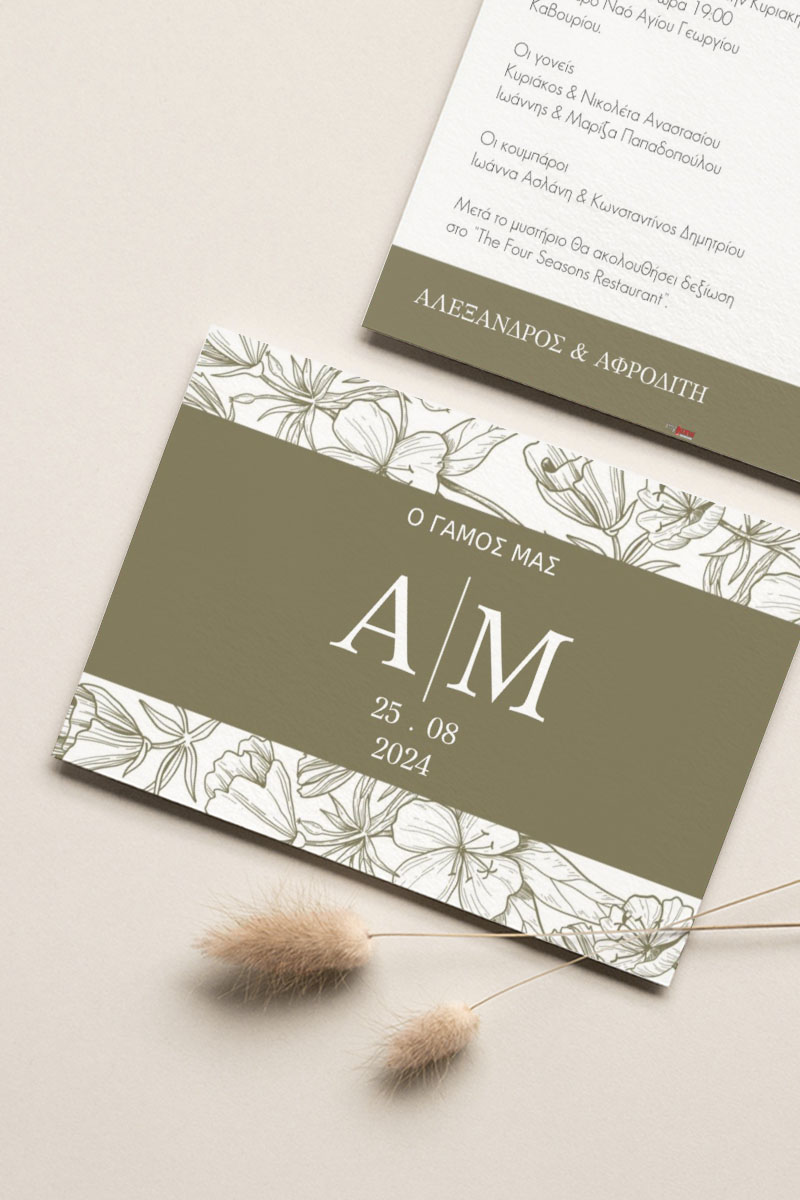 Αποκτήστε τα προσκλητήρια γάμου με σχέδιο Minimal Ανθισμένα Λουλούδια. Οι πελάτες μας τα ξεχωρίζουν για το υψηλής ποιότητας ιταλικό χαρτί και την εκτύπωση υψηλής ευκρίνειας Myikona High Definition. Διαθέσιμα σε διαφορετικές διαστάσεις.