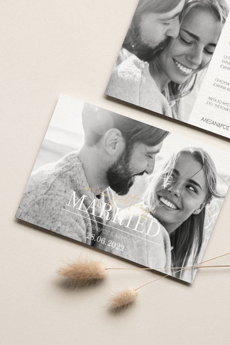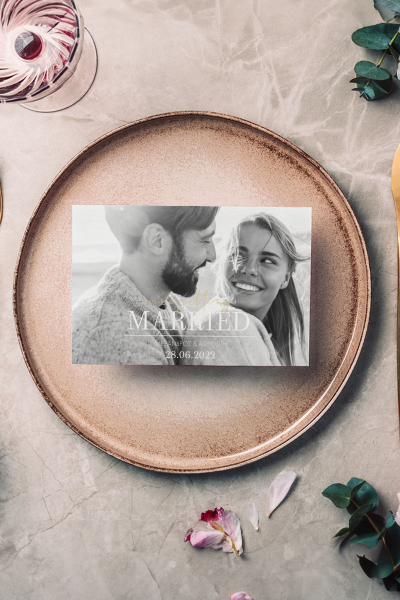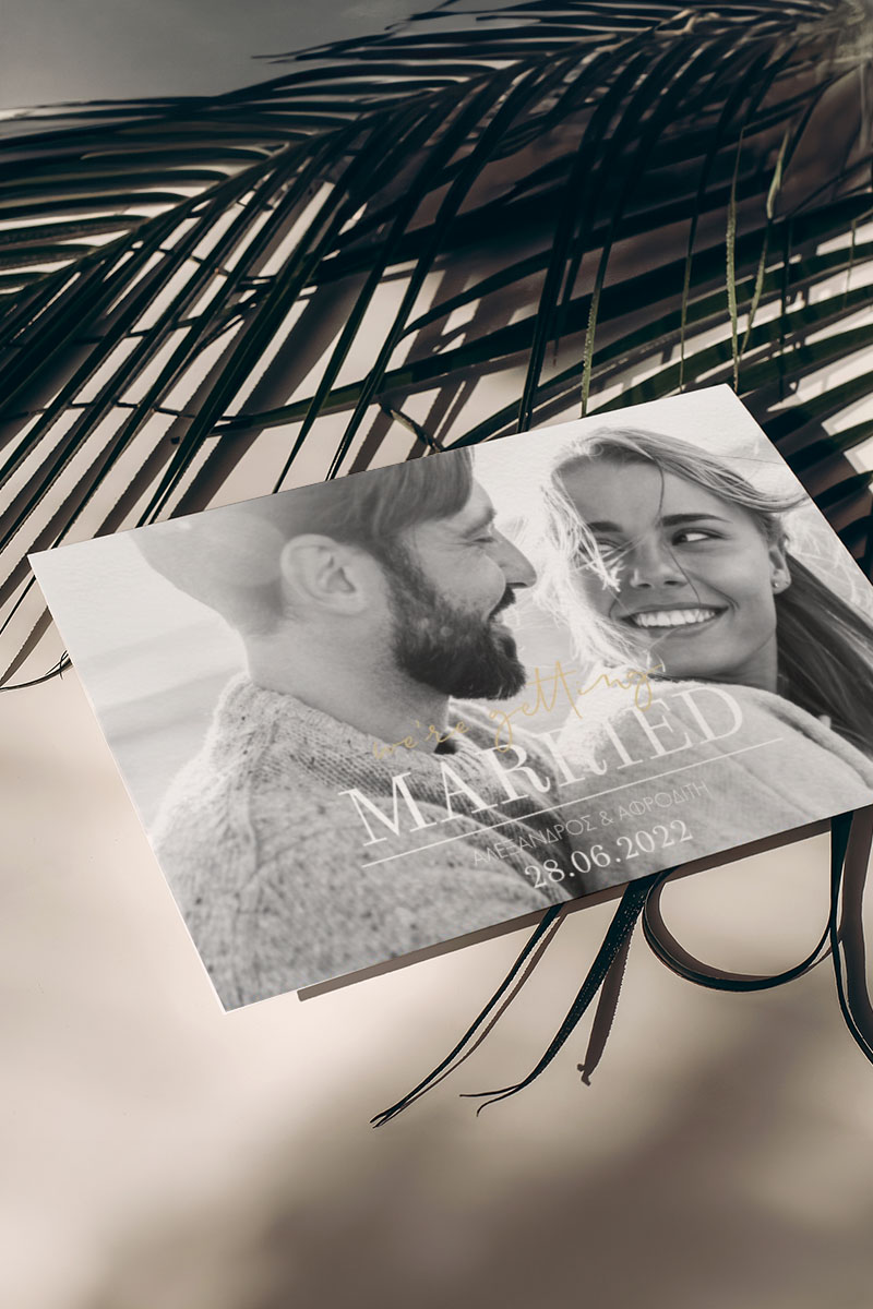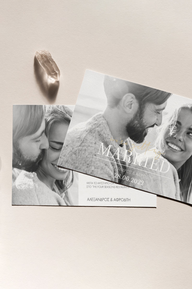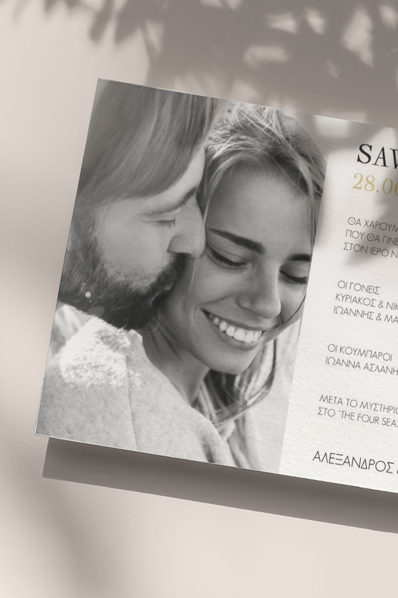 Αποκτήστε τα προσκλητήρια γάμου με σχέδιο Minimal Elegance. Οι πελάτες μας τα ξεχωρίζουν για το υψηλής ποιότητας ιταλικό χαρτί και την εκτύπωση υψηλής ευκρίνειας Myikona High Definition. Διαθέσιμα σε διαφορετικές διαστάσεις.