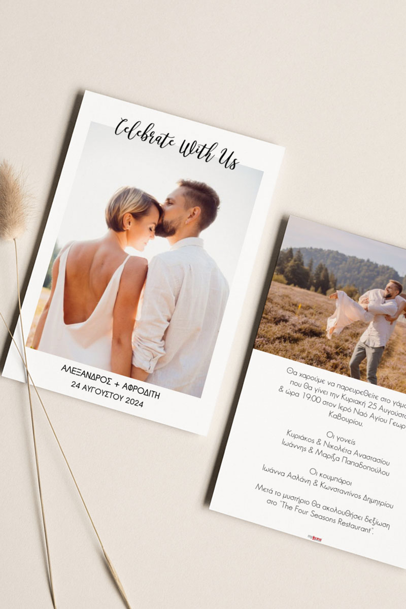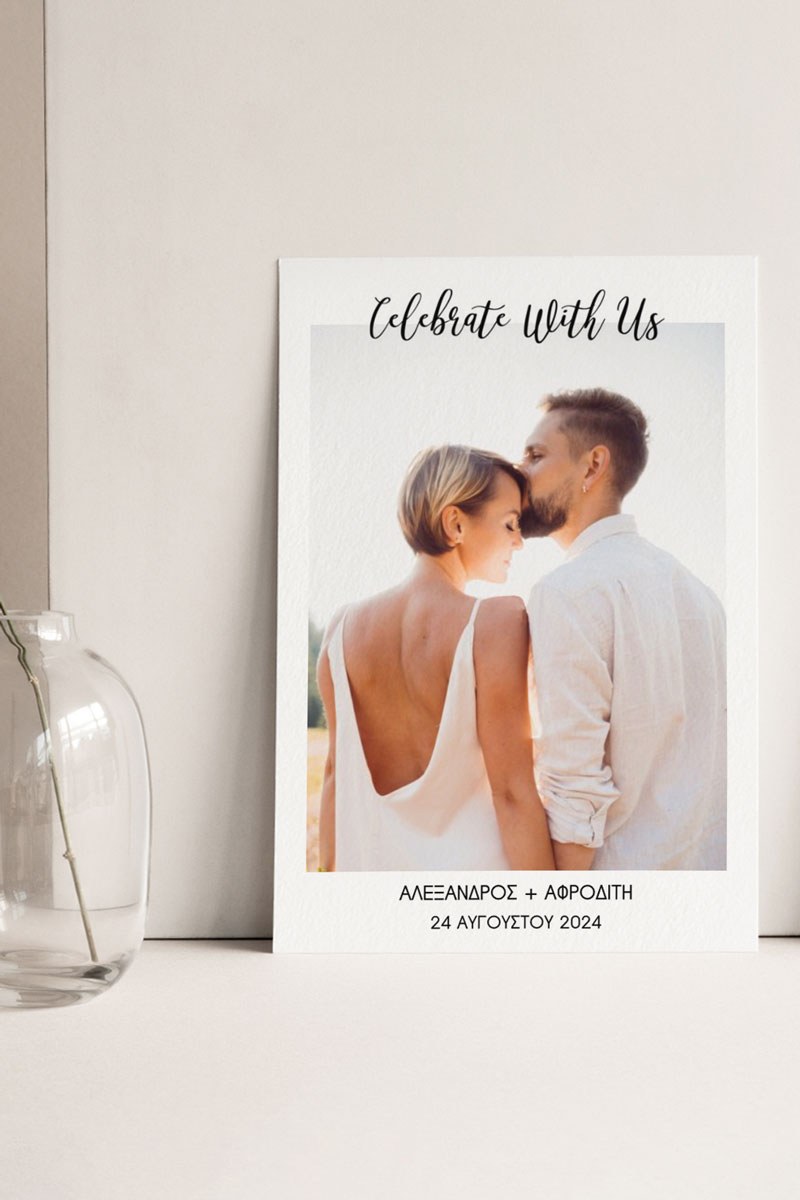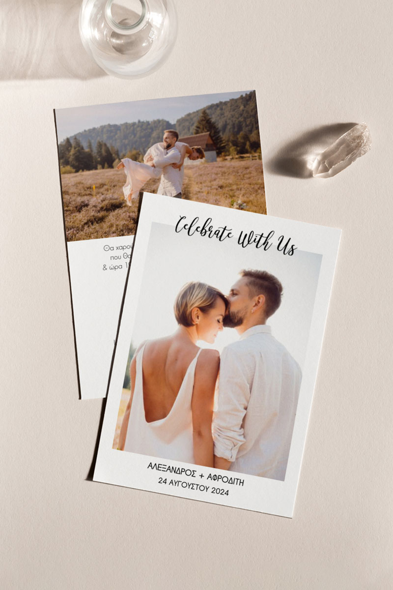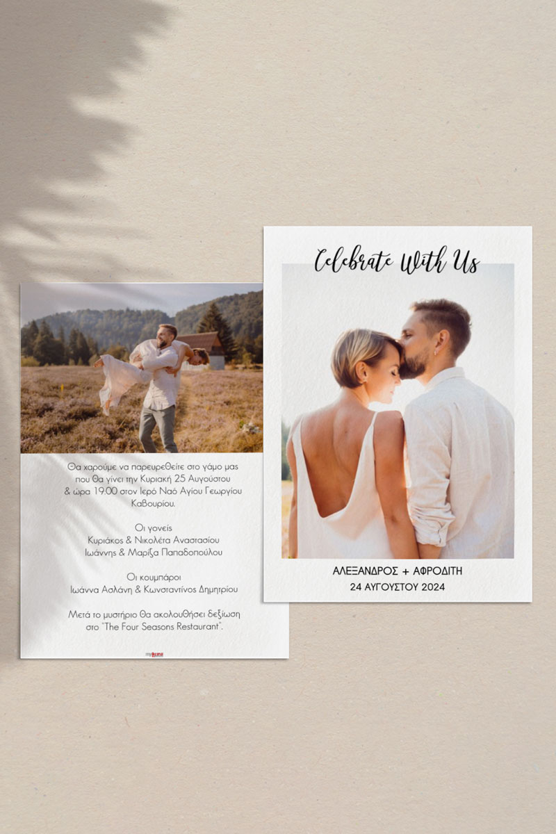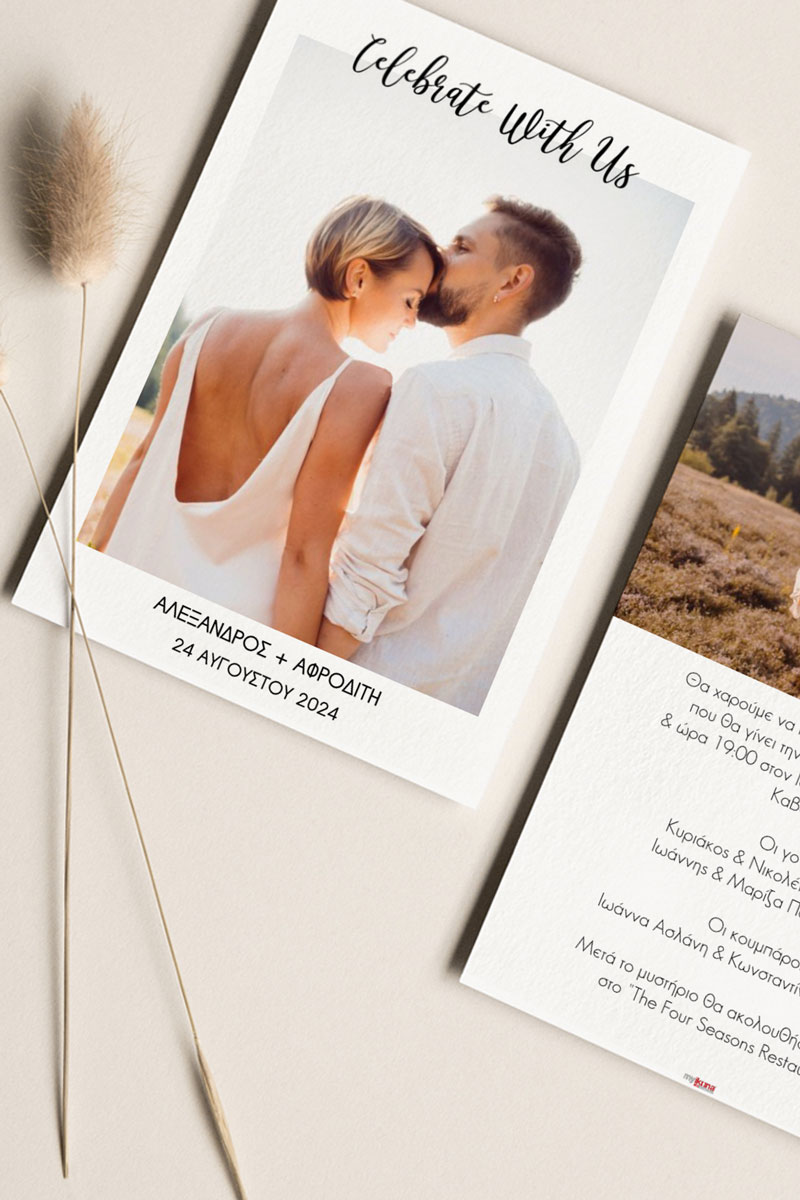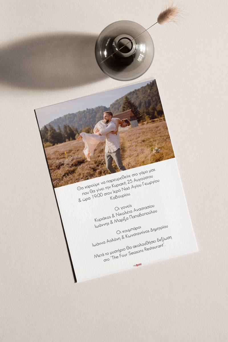 Αποκτήστε τα προσκλητήρια γάμου με σχέδιο Minimal Elegance. Οι πελάτες μας τα ξεχωρίζουν για το υψηλής ποιότητας ιταλικό χαρτί και την εκτύπωση υψηλής ευκρίνειας Myikona High Definition. Διαθέσιμα σε διαφορετικές διαστάσεις.