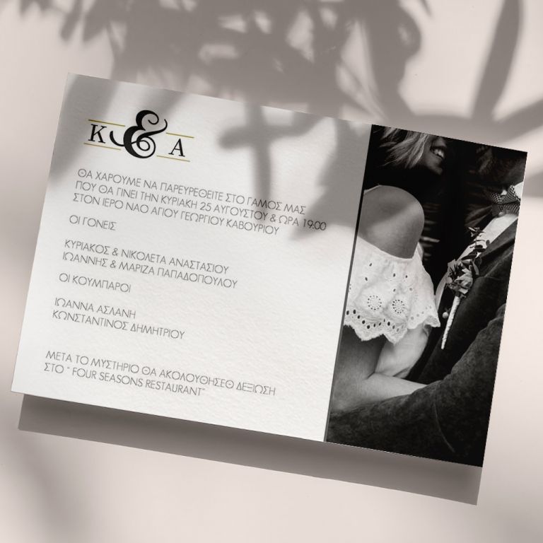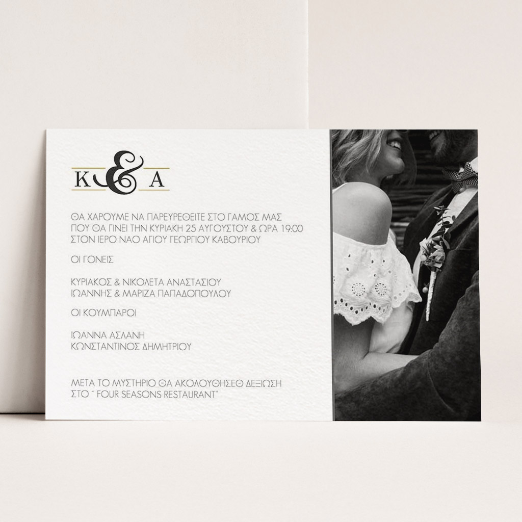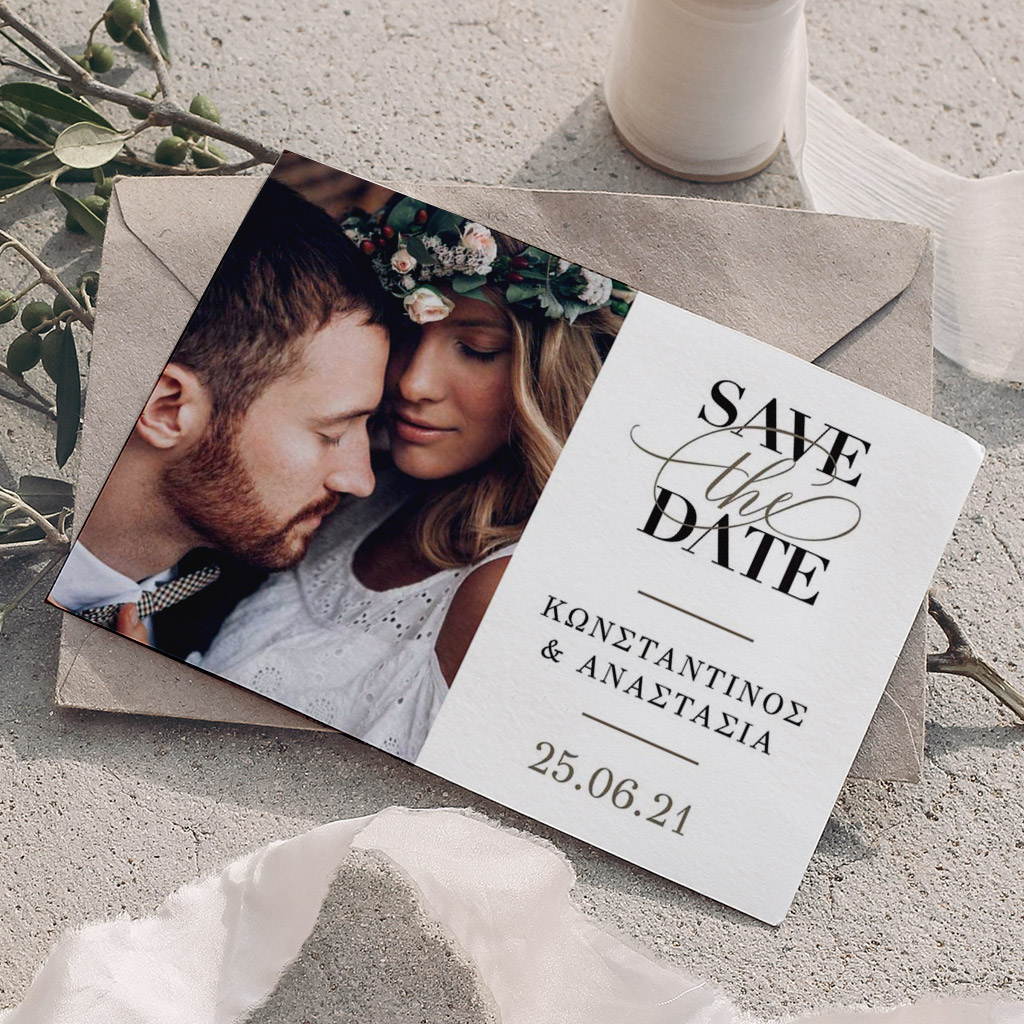 Αποκτήστε τα προσκλητήρια γάμου με σχέδιο Minimal Elegance. Οι πελάτες μας τα ξεχωρίζουν για το υψηλής ποιότητας ιταλικό χαρτί και την εκτύπωση υψηλής ευκρίνειας Myikona High Definition. Διαθέσιμα σε διαφορετικές διαστάσεις.