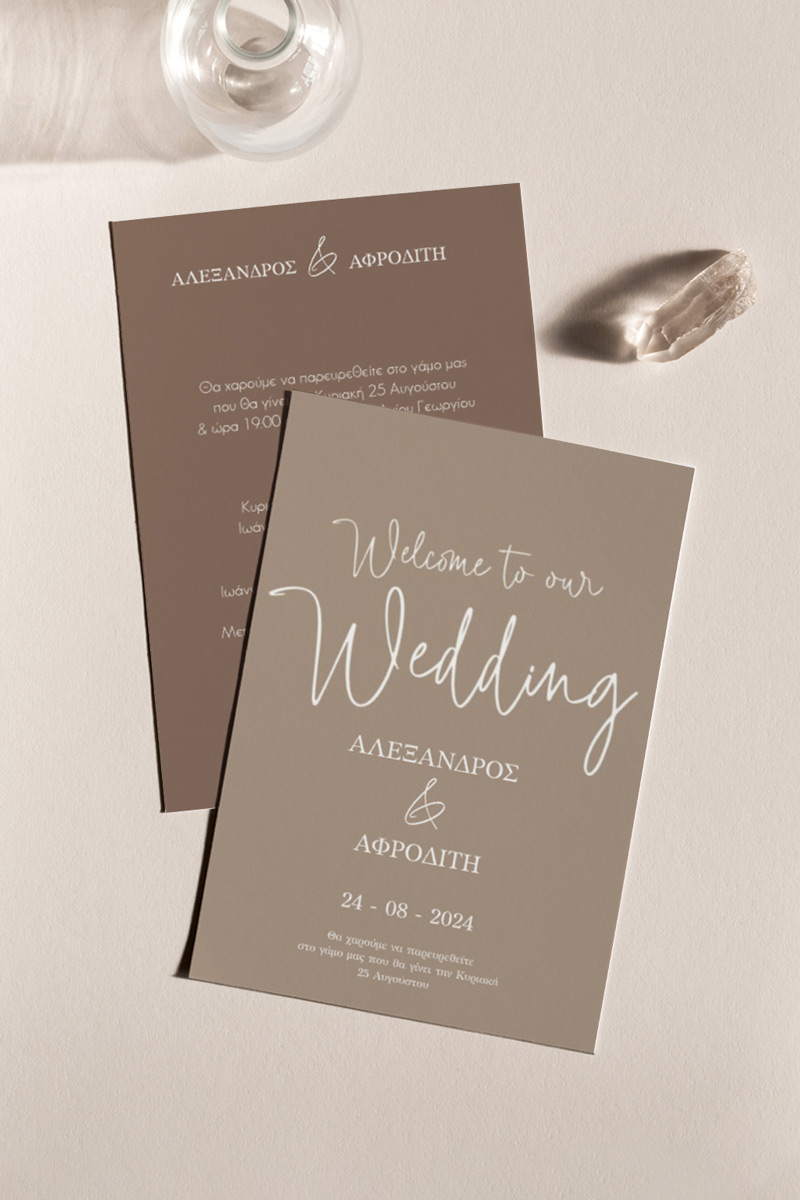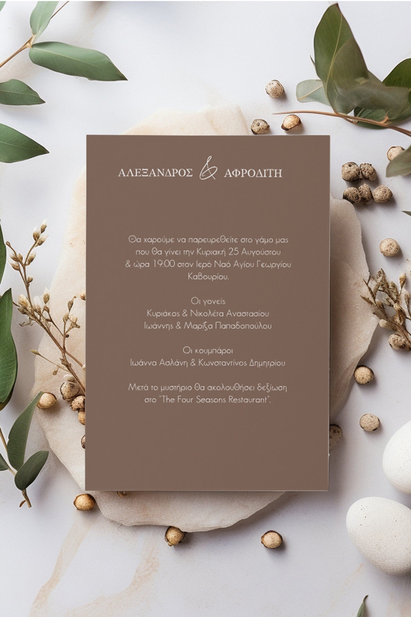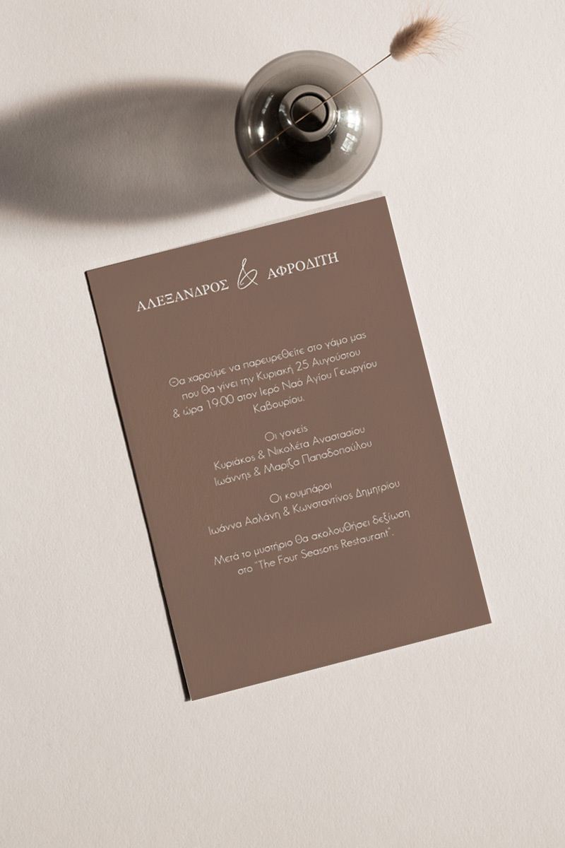 Αποκτήστε τα προσκλητήρια γάμου με σχέδιο Minimal Elegance. Οι πελάτες μας τα ξεχωρίζουν για το υψηλής ποιότητας ιταλικό χαρτί και την εκτύπωση υψηλής ευκρίνειας Myikona High Definition. Διαθέσιμα σε διαφορετικές διαστάσεις.