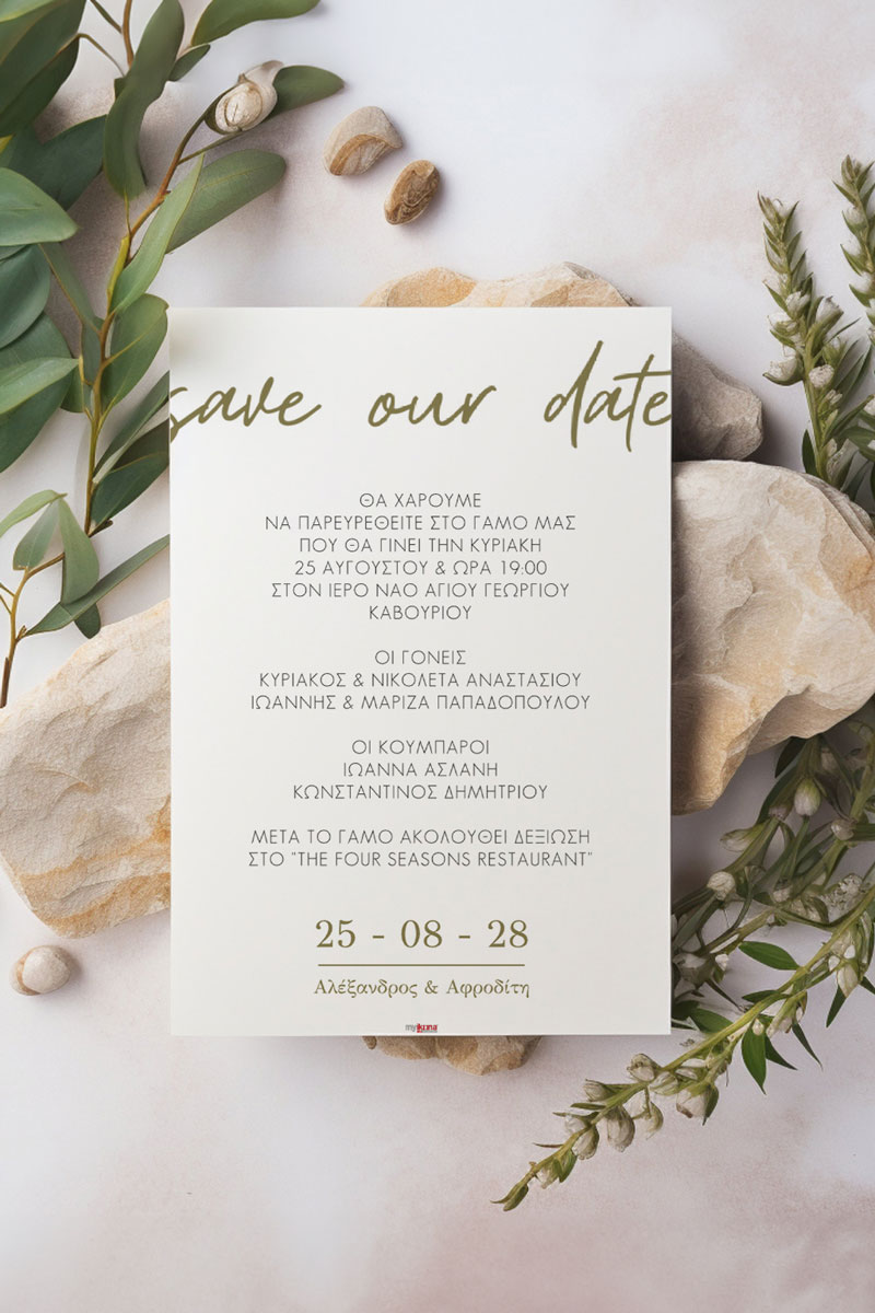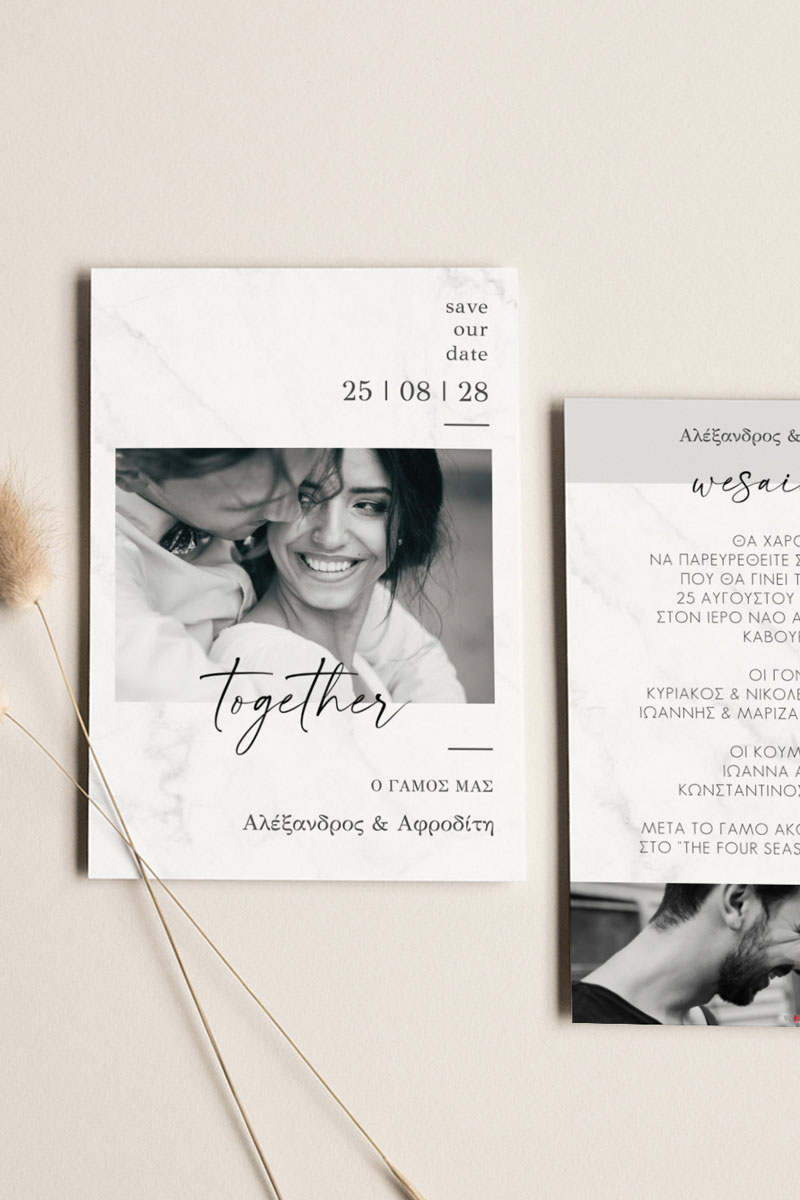 Αποκτήστε τα προσκλητήρια γάμου με σχέδιο Minimal Elegance. Οι πελάτες μας τα ξεχωρίζουν για το υψηλής ποιότητας ιταλικό χαρτί και την εκτύπωση υψηλής ευκρίνειας Myikona High Definition. Διαθέσιμα σε διαφορετικές διαστάσεις.
