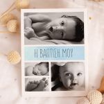 Κάθε λεπτομέρεια μετράει στην πιο όμορφη στιγμή της ζωής σας. Αυτό αντικατοπτρίζεται στα Προσκλητήρια Βάπτισης για αγόρι με σχέδιο You Are My life, τα οποία χρησιμοποιούν υψηλής ποιότητας ιταλικό χαρτί και Myikona High Definition εκτύπωση. Διαθέσιμα σε διαφορετικές διαστάσεις.