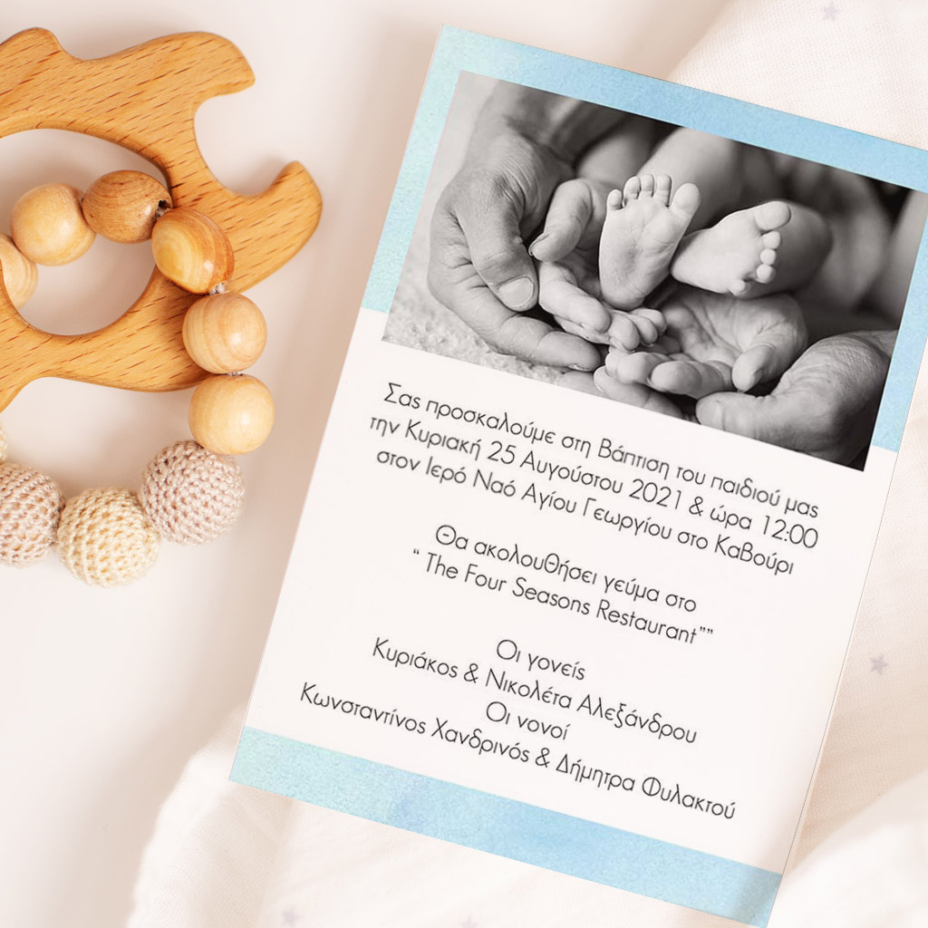 Κάθε λεπτομέρεια μετράει στην πιο όμορφη στιγμή της ζωής σας. Αυτό αντικατοπτρίζεται στα Προσκλητήρια Βάπτισης για αγόρι με σχέδιο You Are My life, τα οποία χρησιμοποιούν υψηλής ποιότητας ιταλικό χαρτί και Myikona High Definition εκτύπωση. Διαθέσιμα σε διαφορετικές διαστάσεις.
