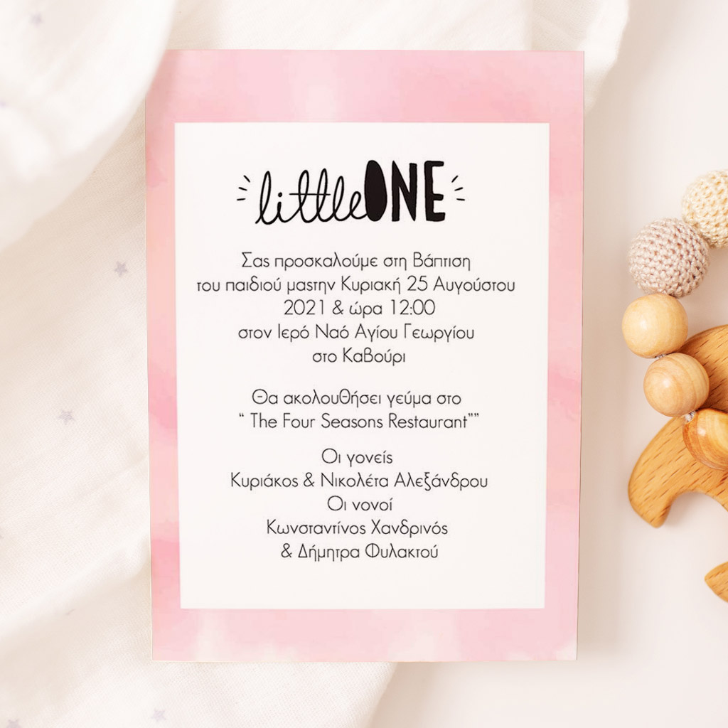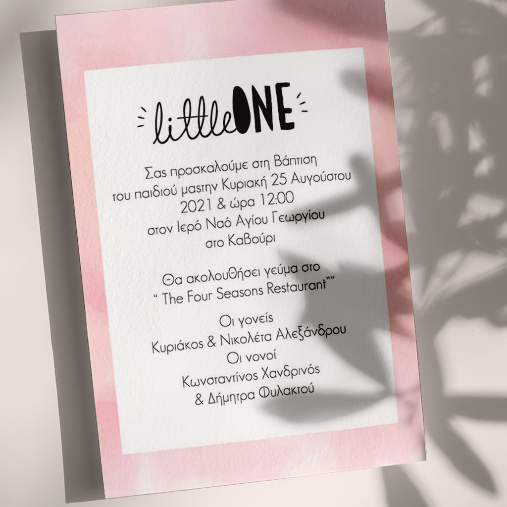 Προσκαλέστε επίσημα τους φίλους, την οικογένεια και τους αγαπημένους σας στο μυστήριο της Βάπτισης του αγοριού σας ή του κοριτσιού σας με το ομορφότερο προσκλητήριο Βάπτισης! Είτε πρόκειται για μια vintage ή ρομαντική Βάπτιση στην Αθήνα, είτε για μια πρωτότυπη Βάπτιση στη Θεσσαλονίκη, θα δημιουργήσετε μια μοναδική πρόσκληση ακριβώς όπως την έχετε ονειρευτεί