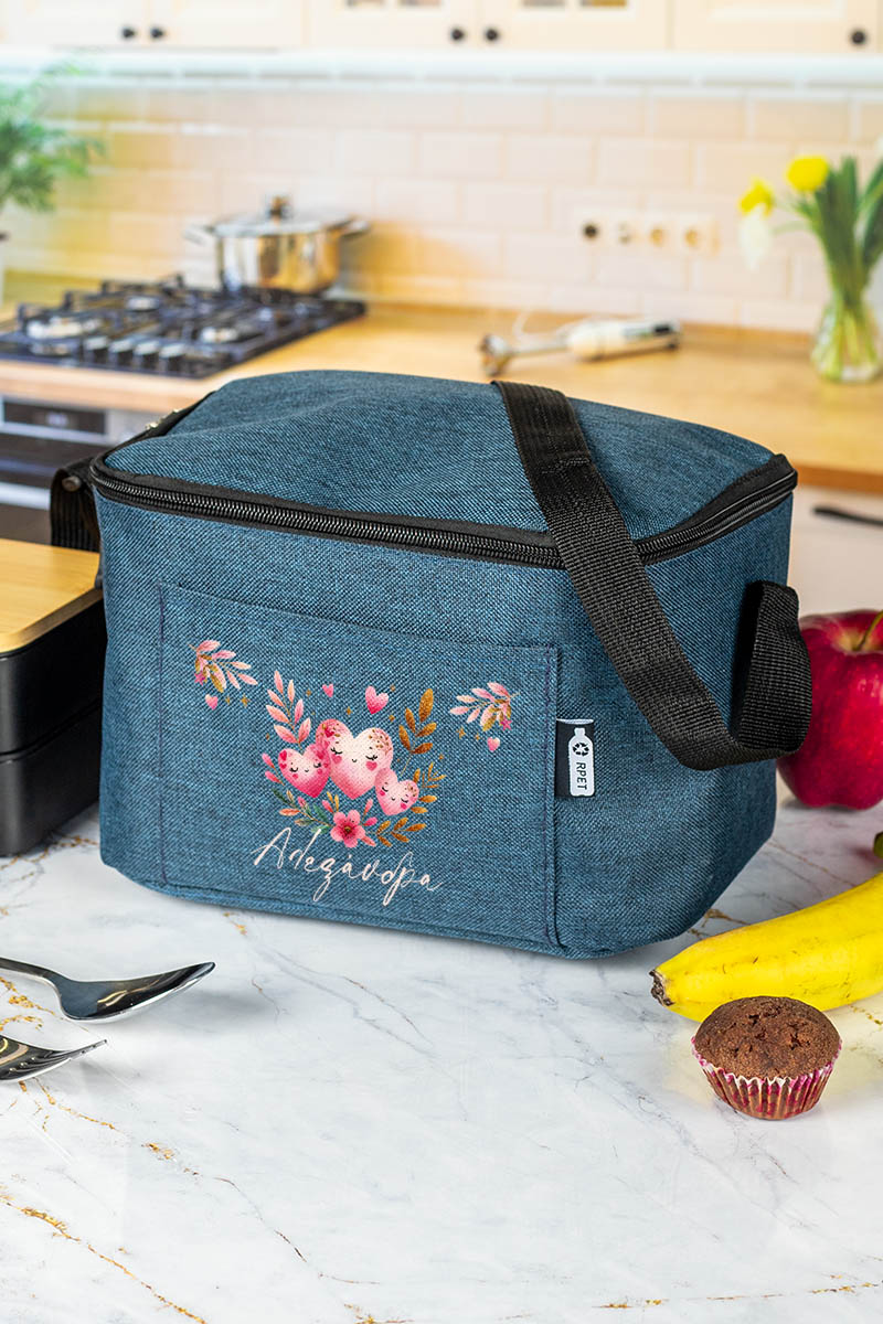 Προσωποποιημένο ισοθερμικό τσαντάκι φαγητού με το όνομα του παιδιού & μπροστινή τσέπη. Γράφει το όνομά του για να μην το χάσει ή το μπερδέψει!