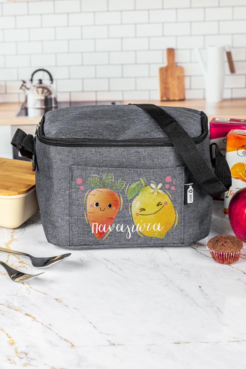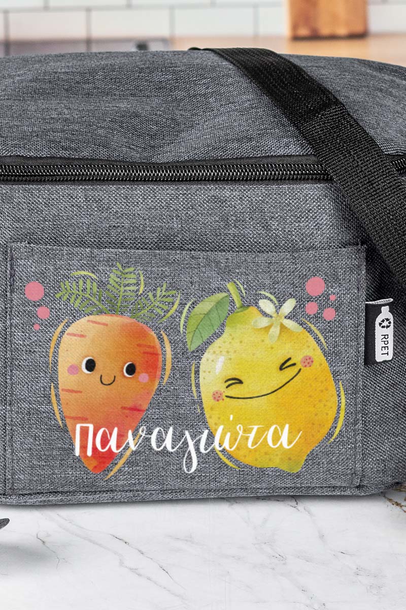 Προσωποποιημένο ισοθερμικό τσαντάκι φαγητού με το όνομα του παιδιού & μπροστινή τσέπη. Γράφει το όνομά του για να μην το χάσει ή το μπερδέψει!