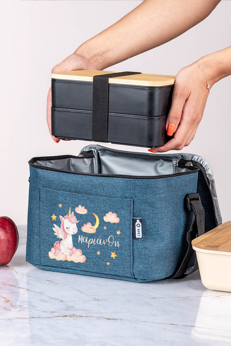 Προσωποποιημένο ισοθερμικό τσαντάκι φαγητού με το όνομα του παιδιού & μπροστινή τσέπη. Γράφει το όνομά του για να μην το χάσει ή το μπερδέψει!