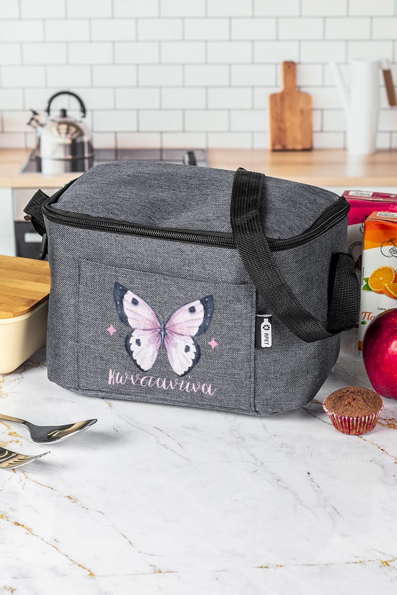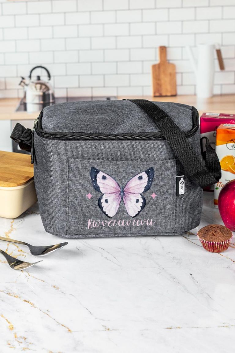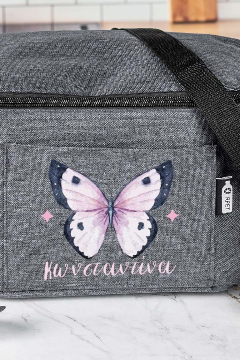 Ισοθερμικό Τσαντάκι Φαγητού με το Όνομα του Παιδιού, Pink Butterfly