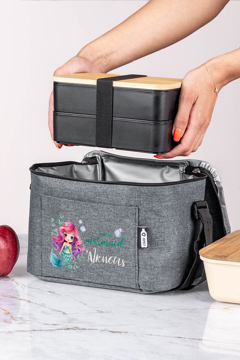 Προσωποποιημένο ισοθερμικό τσαντάκι φαγητού με το όνομα του παιδιού & μπροστινή τσέπη. Γράφει το όνομά του για να μην το χάσει ή το μπερδέψει!