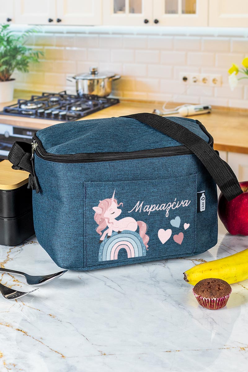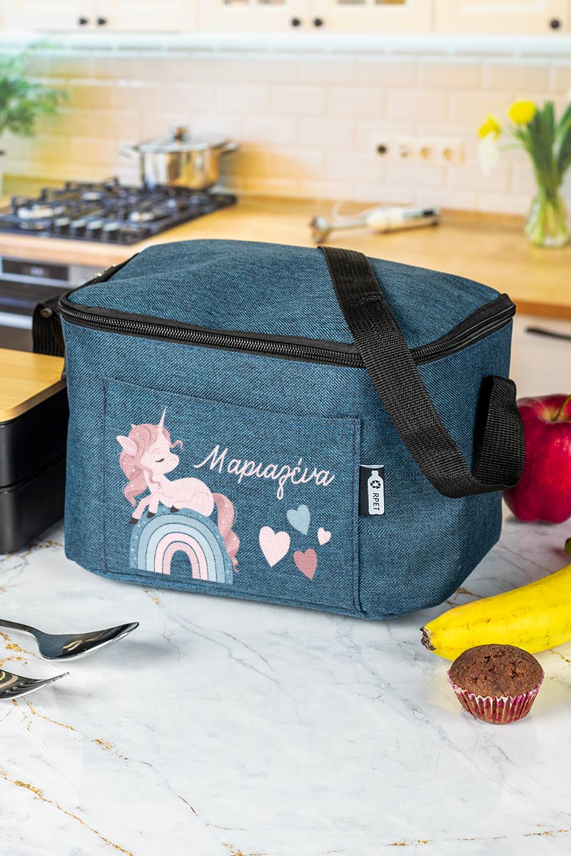 Προσωποποιημένο ισοθερμικό τσαντάκι φαγητού με το όνομα του παιδιού & μπροστινή τσέπη. Γράφει το όνομά του για να μην το χάσει ή το μπερδέψει!