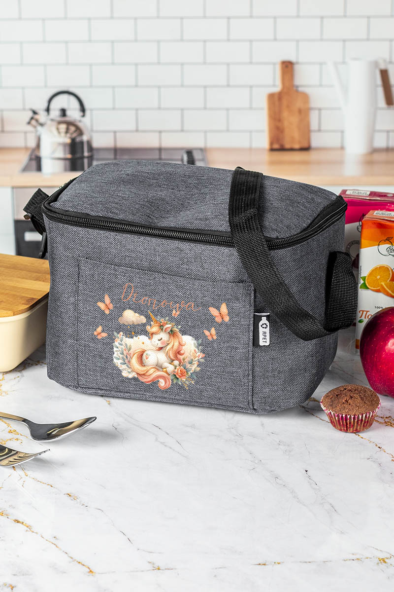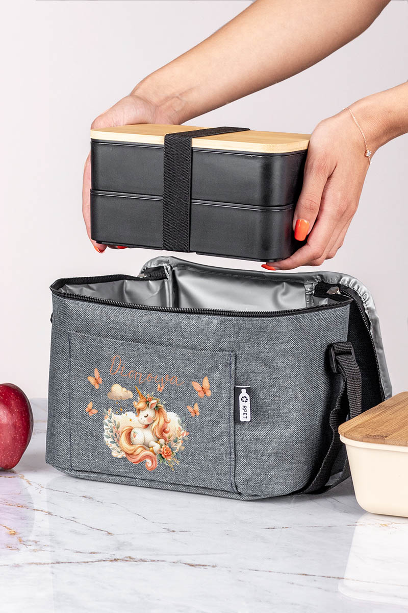 Προσωποποιημένο ισοθερμικό τσαντάκι φαγητού με το όνομα του παιδιού & μπροστινή τσέπη. Γράφει το όνομά του για να μην το χάσει ή το μπερδέψει!