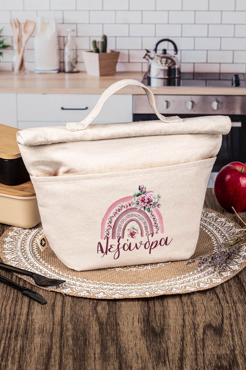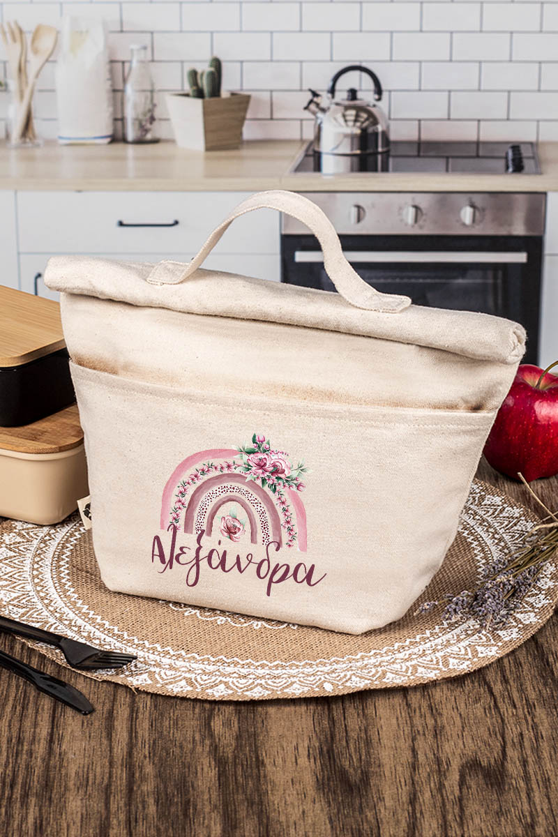 Ισοθερμικό Τσαντάκι Φαγητού Παιδικό με Όνομα, Floral Rainbow