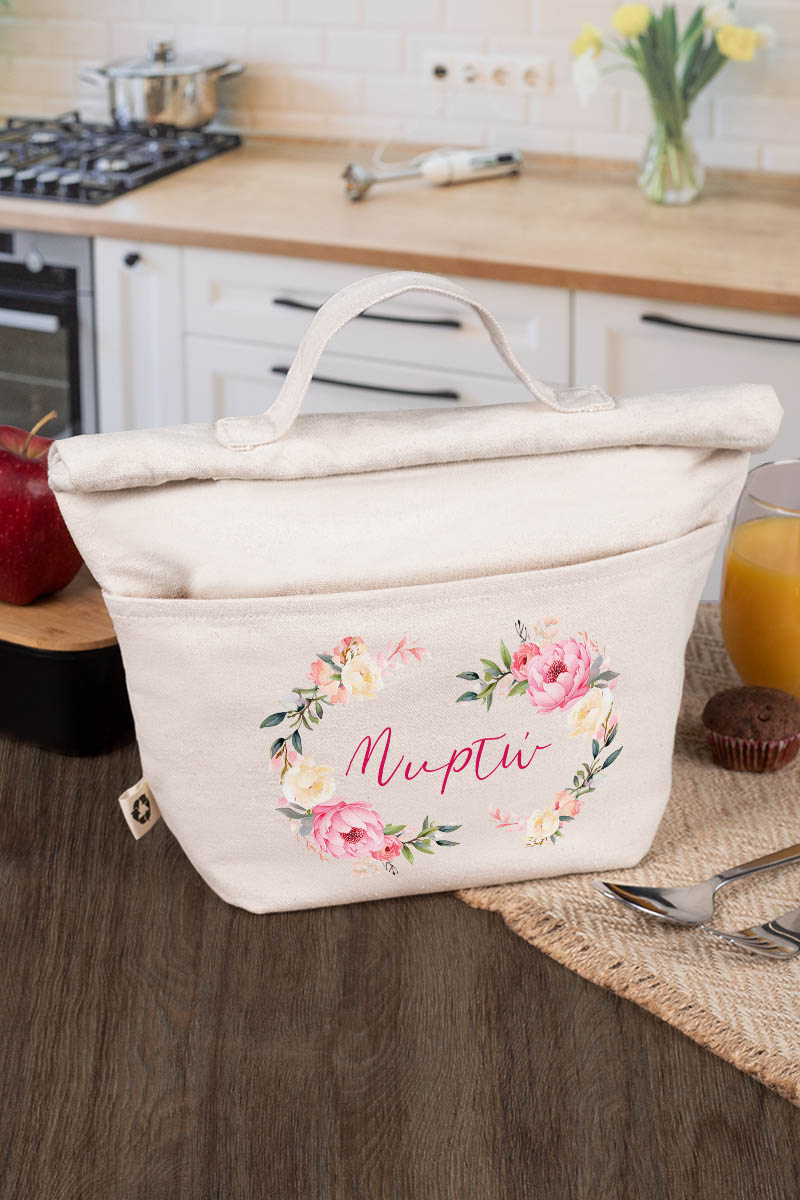 Ισοθερμικό Τσαντάκι Φαγητού Παιδικό με Όνομα, Flower Branches