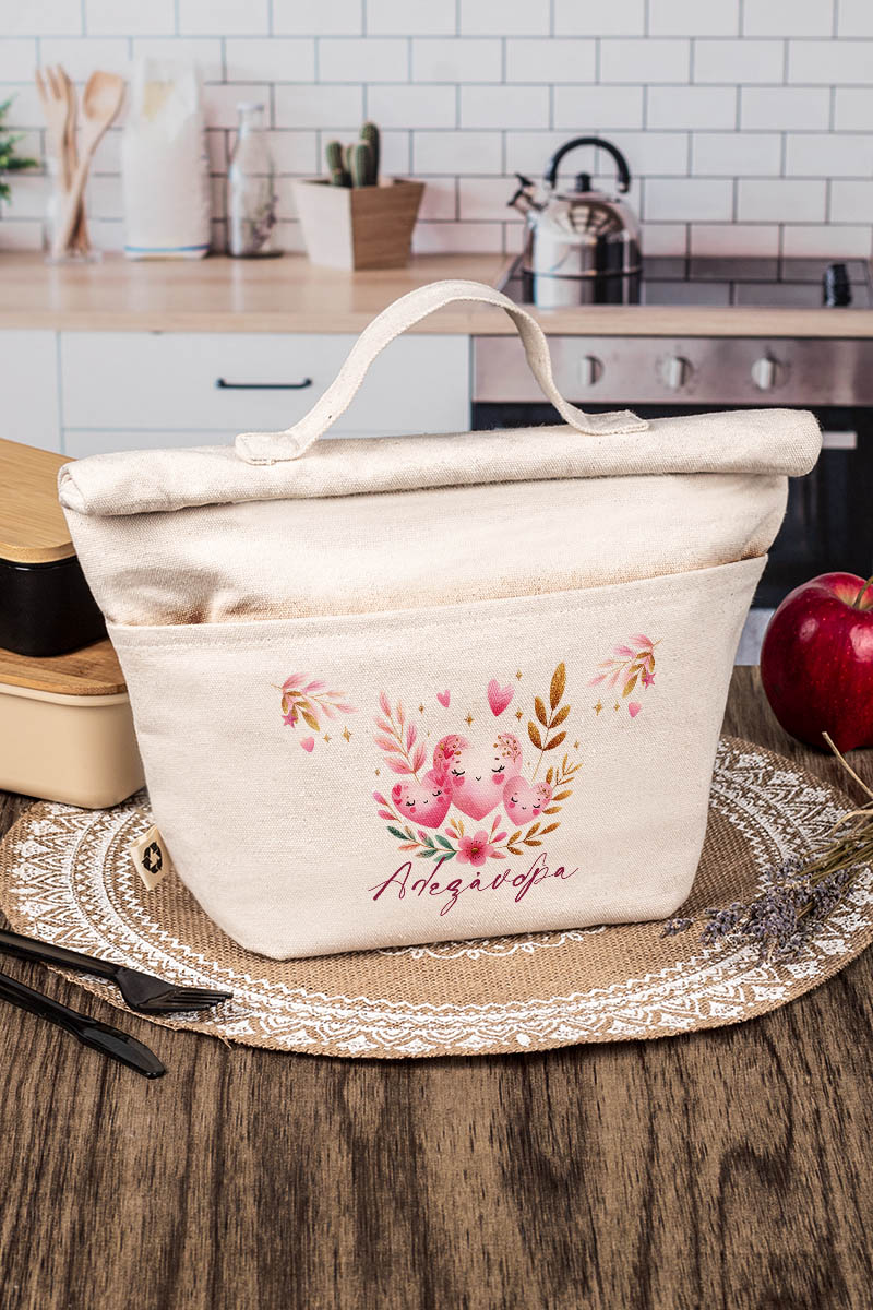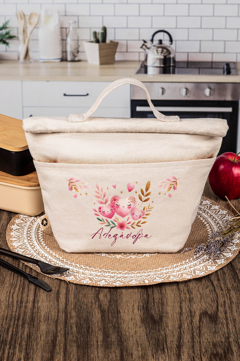 Ισοθερμικό Τσαντάκι Φαγητού Παιδικό με Όνομα, Flower Hearts
