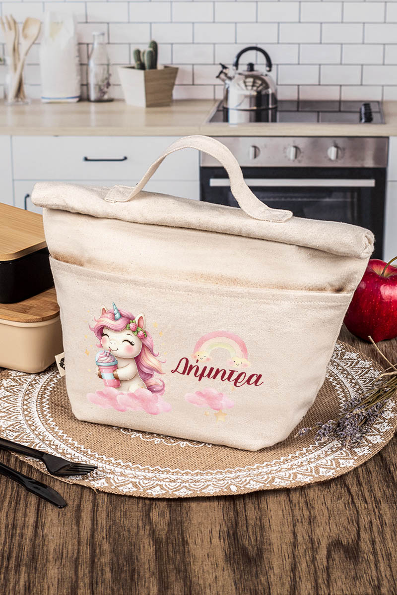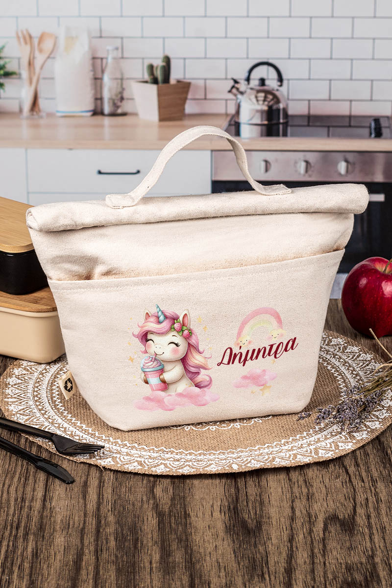 Ισοθερμικό Τσαντάκι Φαγητού Παιδικό με Όνομα, Happy Unicorn