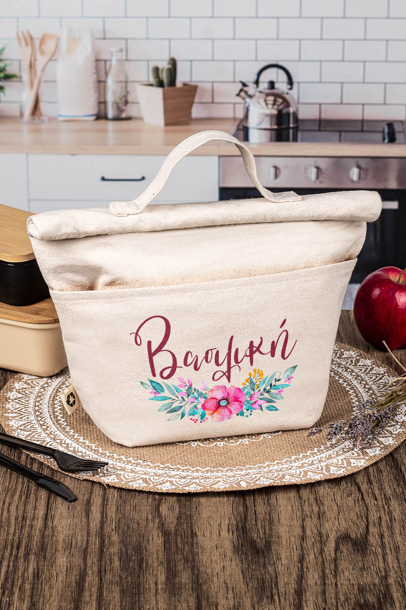 Ισοθερμικό Τσαντάκι Φαγητού Παιδικό με Όνομα, Plain Flower