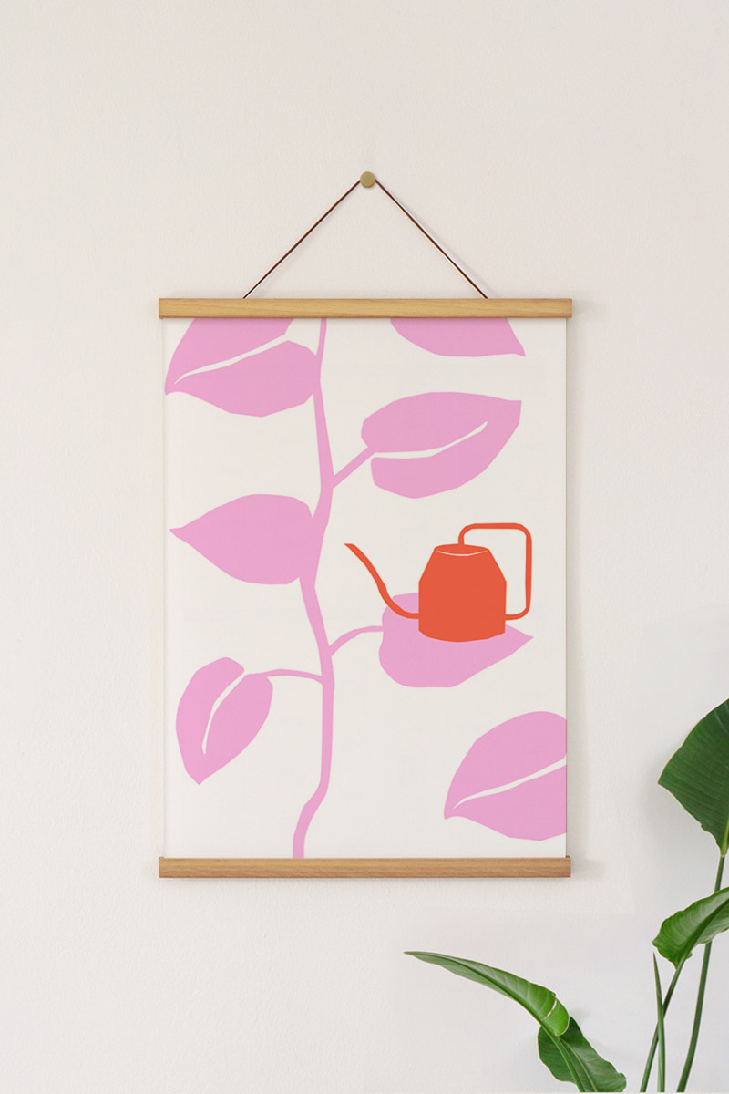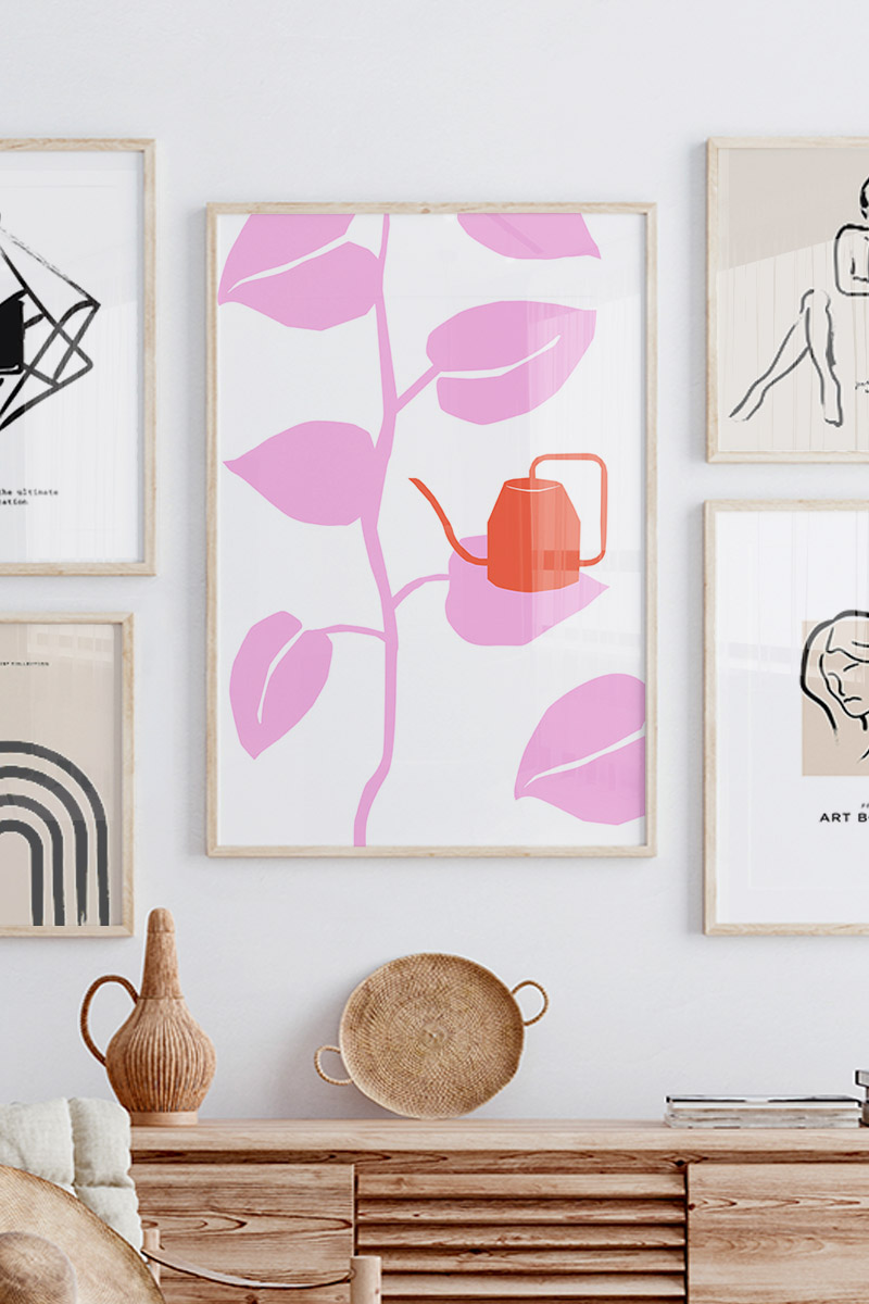 Jardin Color Pink Leaves Premium Poster