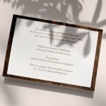 Αποκτήστε τα προσκλητήρια γάμου με σχέδιο Minimal Elegance. Οι πελάτες μας τα ξεχωρίζουν για το υψηλής ποιότητας ιταλικό χαρτί και την εκτύπωση υψηλής ευκρίνειας Myikona High Definition. Διαθέσιμα σε διαφορετικές διαστάσεις.