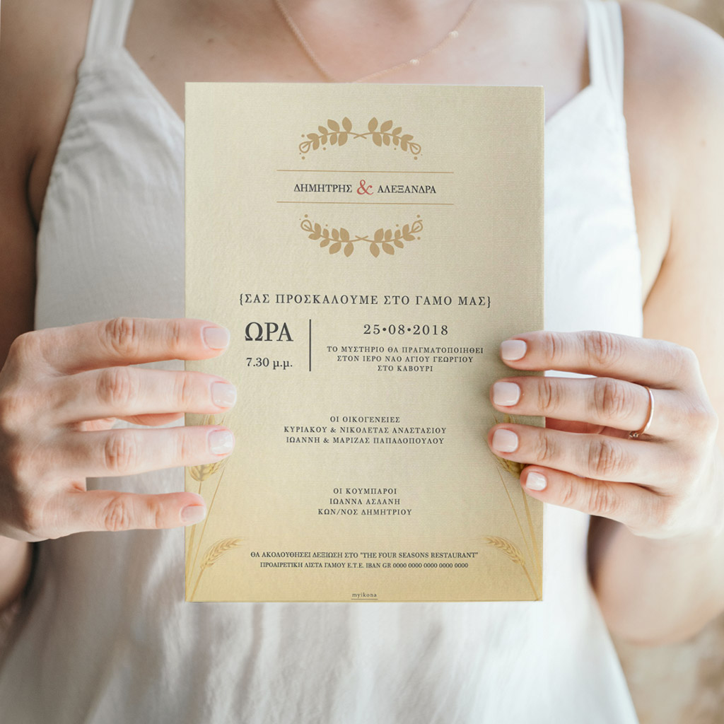 Αποκτήστε τα προσκλητήρια γάμου με σχέδιο Minimal Elegance. Οι πελάτες μας τα ξεχωρίζουν για το υψηλής ποιότητας ιταλικό χαρτί και την εκτύπωση υψηλής ευκρίνειας Myikona High Definition. Διαθέσιμα σε διαφορετικές διαστάσεις.