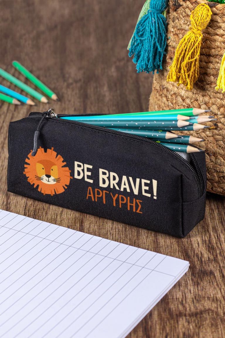 Σχολική Κασετίνα με Όνομα, σε Μαύρο Χρώμα & Σχέδιο Be Brave
